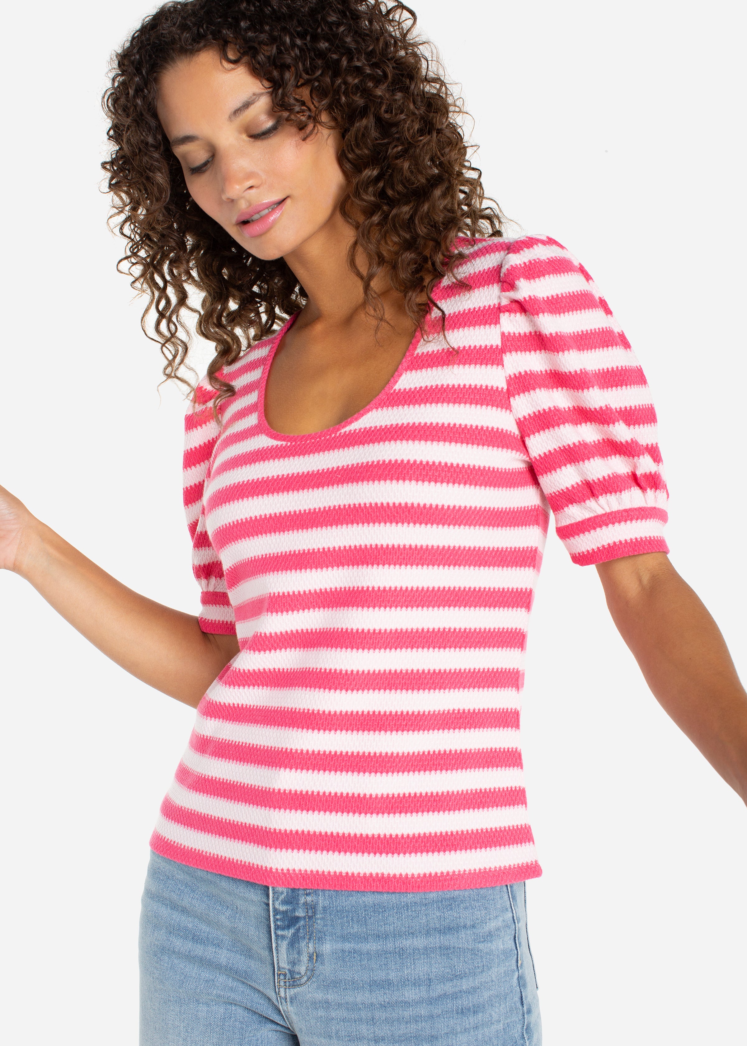 About The Basics Striped Scoop Neck Long Sleeve