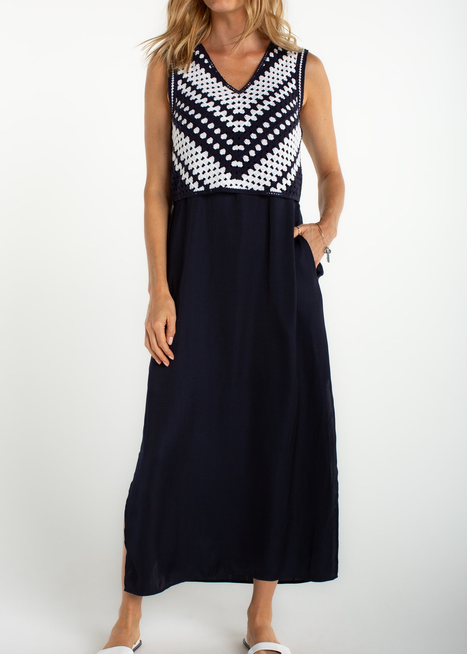 Sleeveless V Neck Lace Woven Dress (Liverpool)