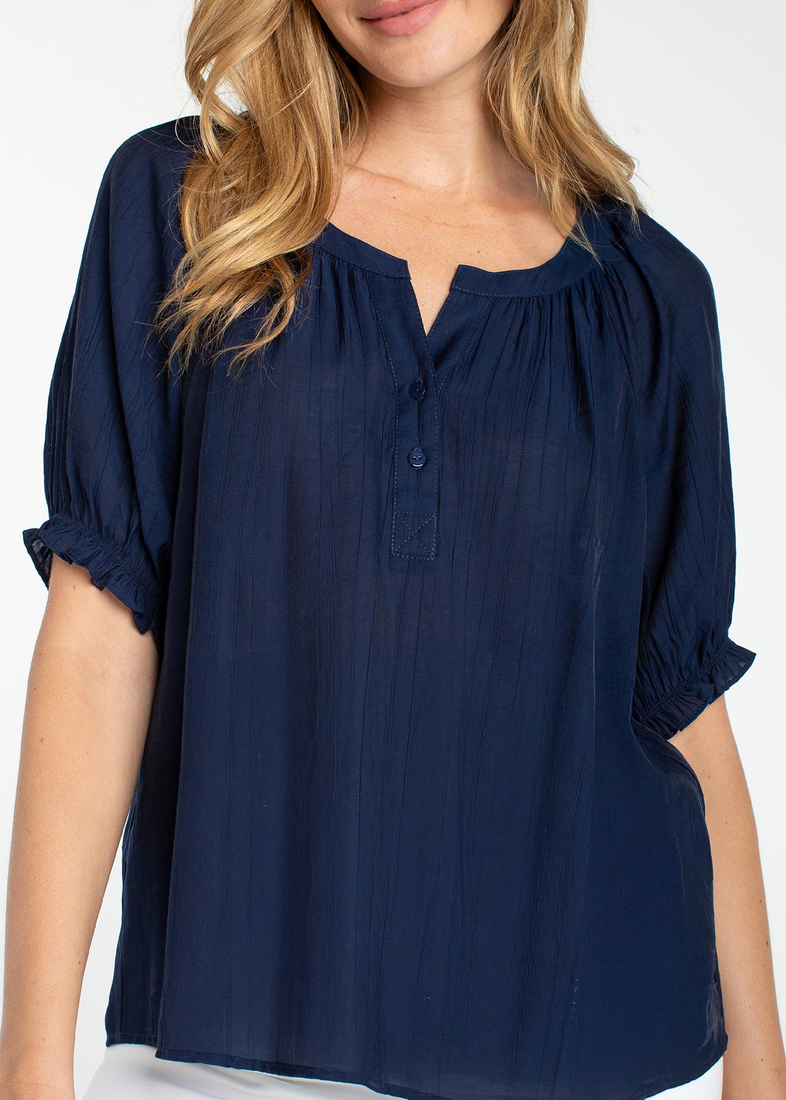 Short Sleeve Half Placket Woven Blouse (Liverpool)