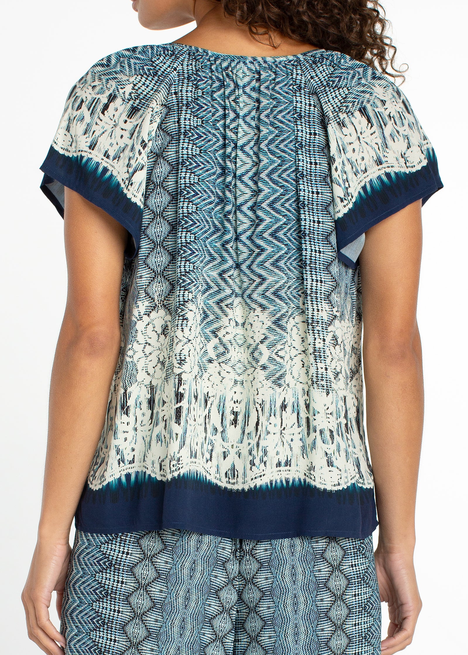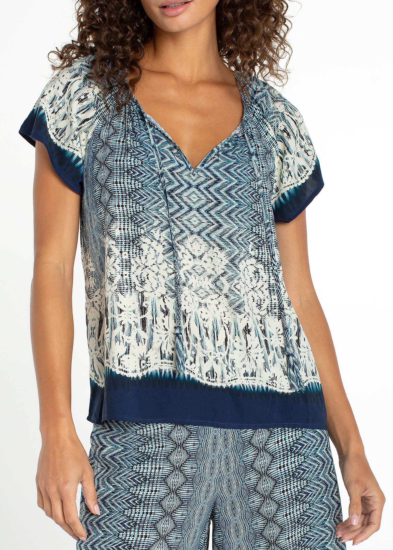 Short Sleeve Woven Top w/ Front Tie (Liverpool)
