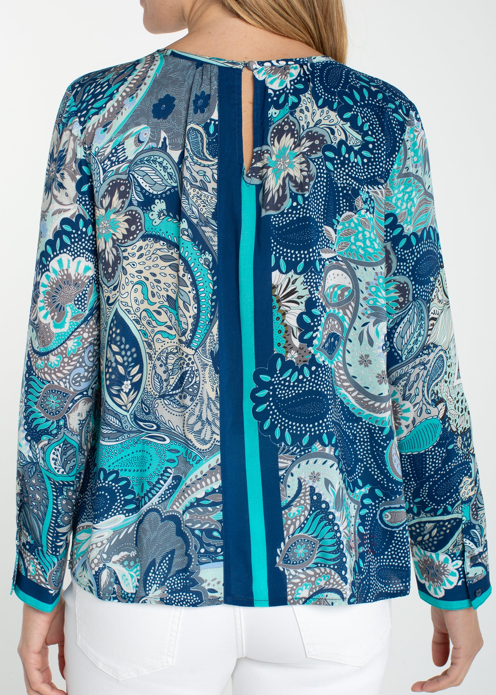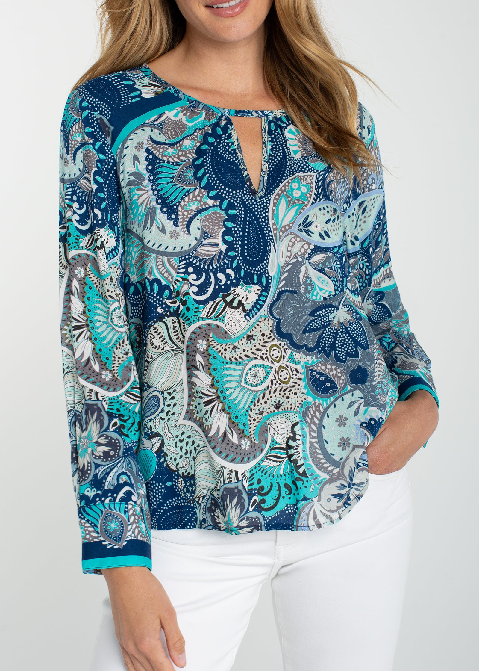 Long Sleeve Woven Top w/ Keyhole Neckline (Liverpool)