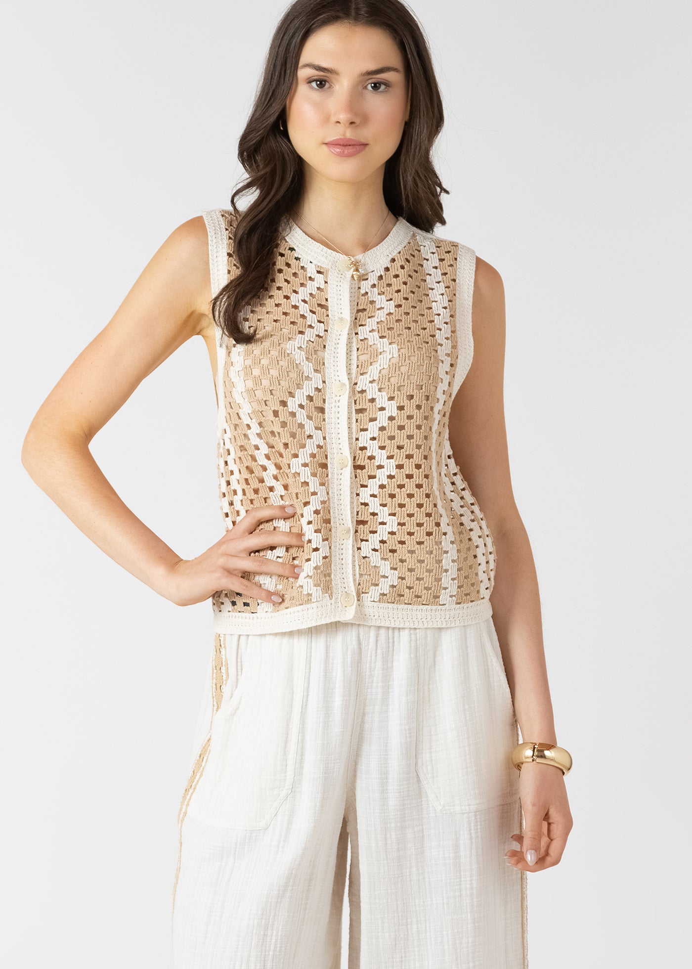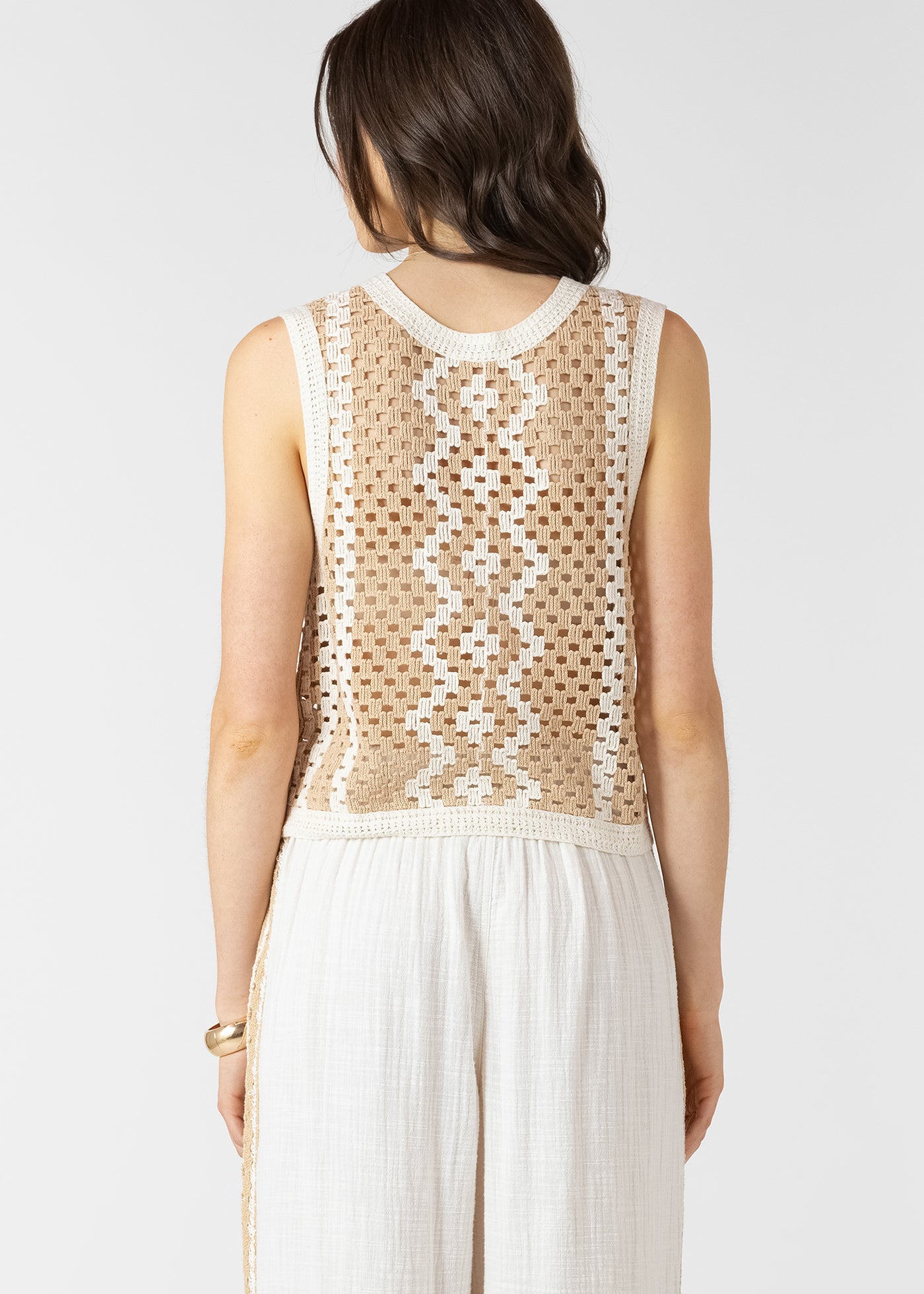 Button Back Open Work Sweater Tank (Dex)