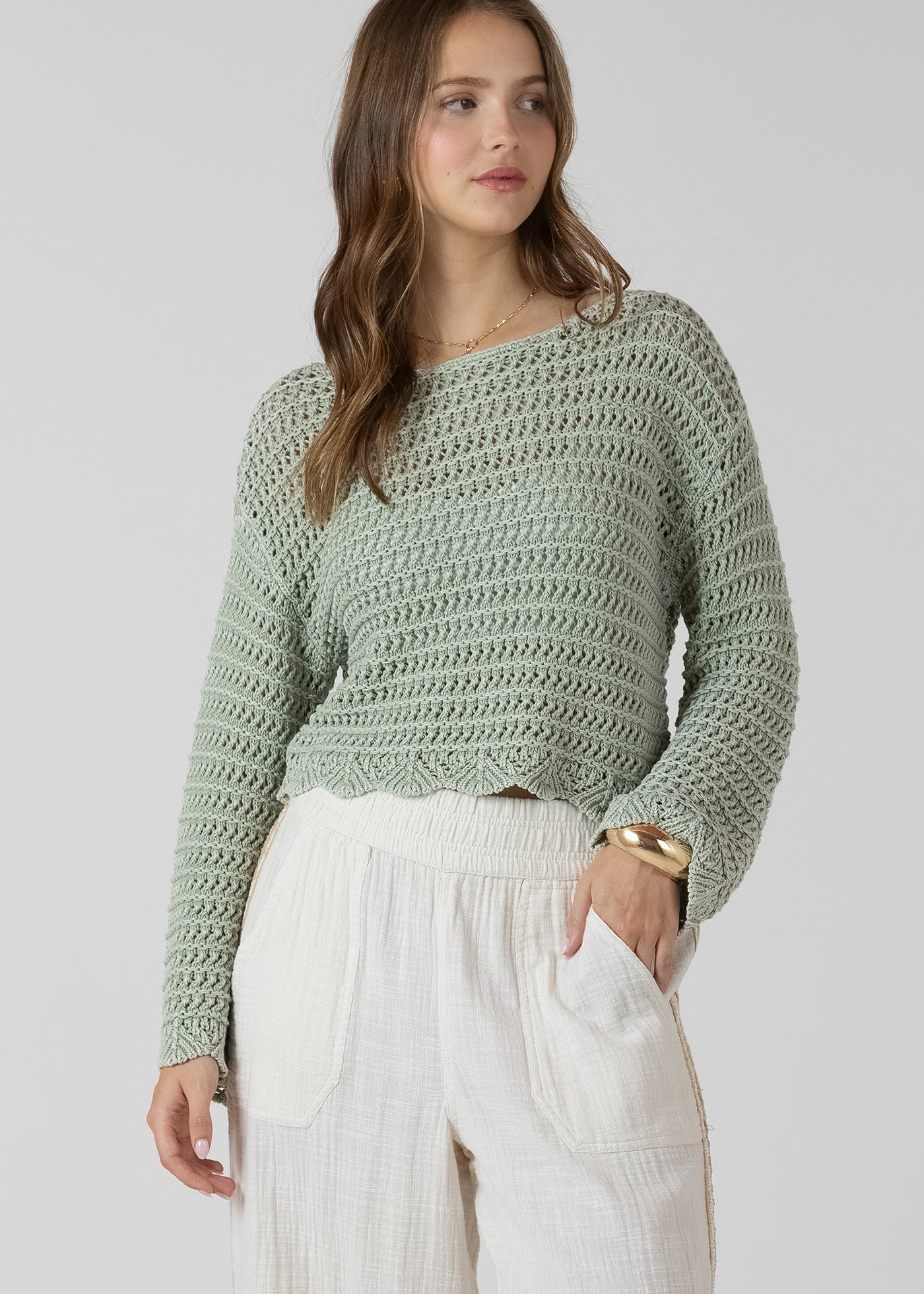 Scalloped Hem Open Stitch Sweater (Dex)