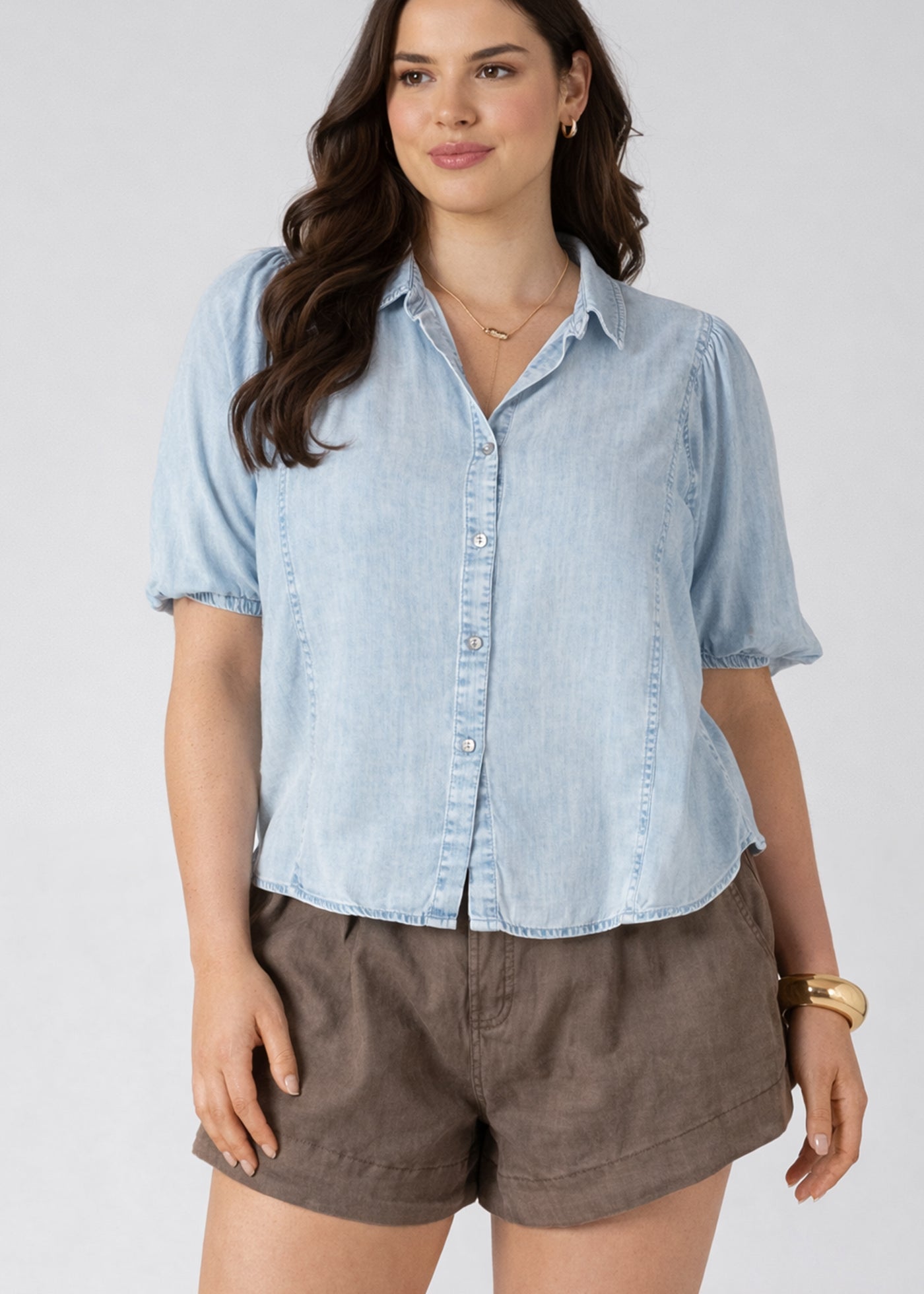 Panelled Button Front Blouse (Plus) (Dex)