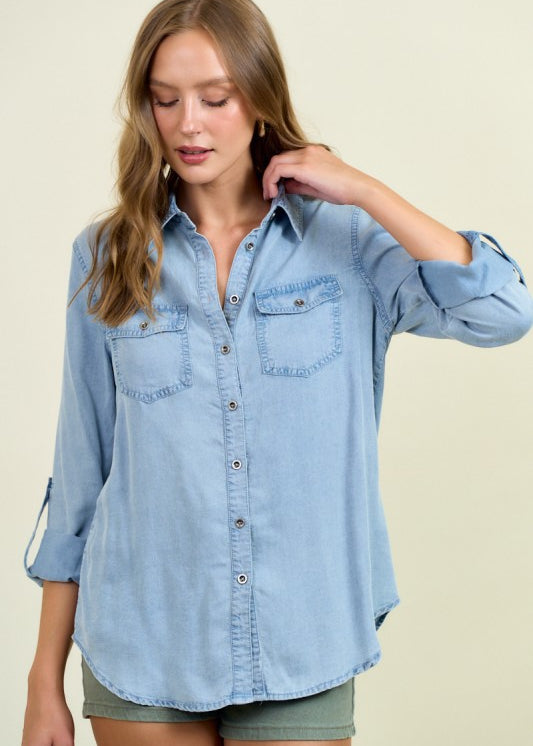 Roll Em Up Chambray Button Down