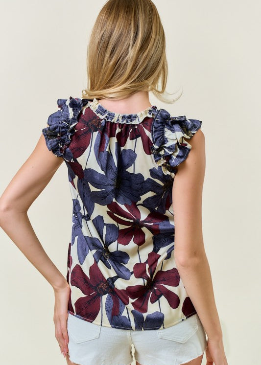Satin & Floral Sleeveless Blouse