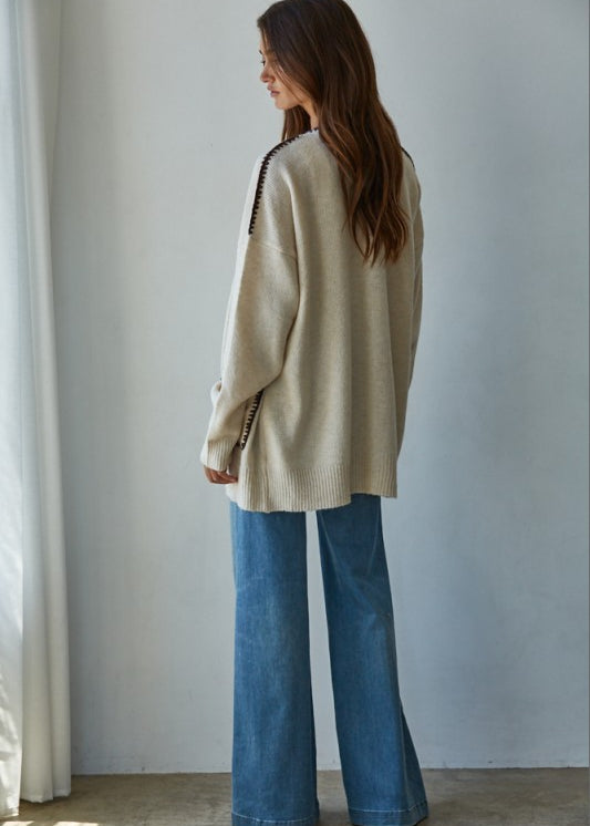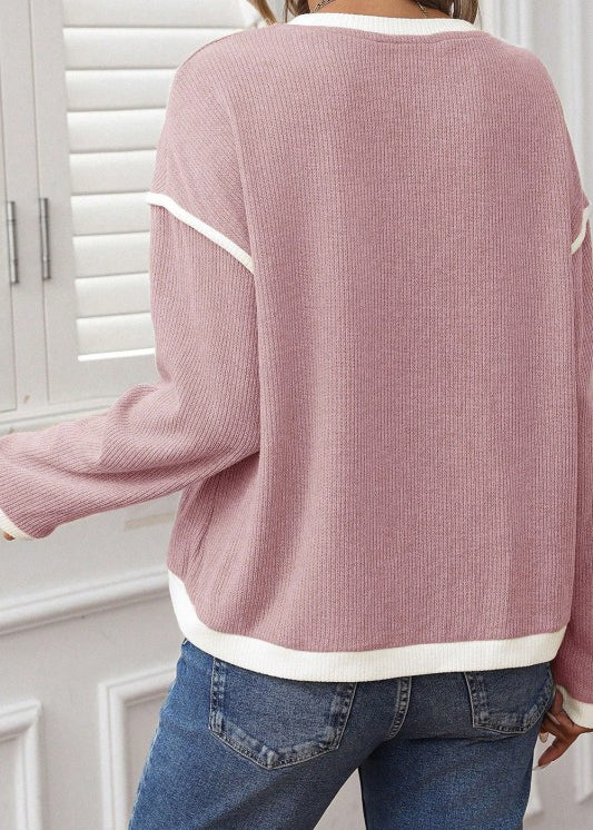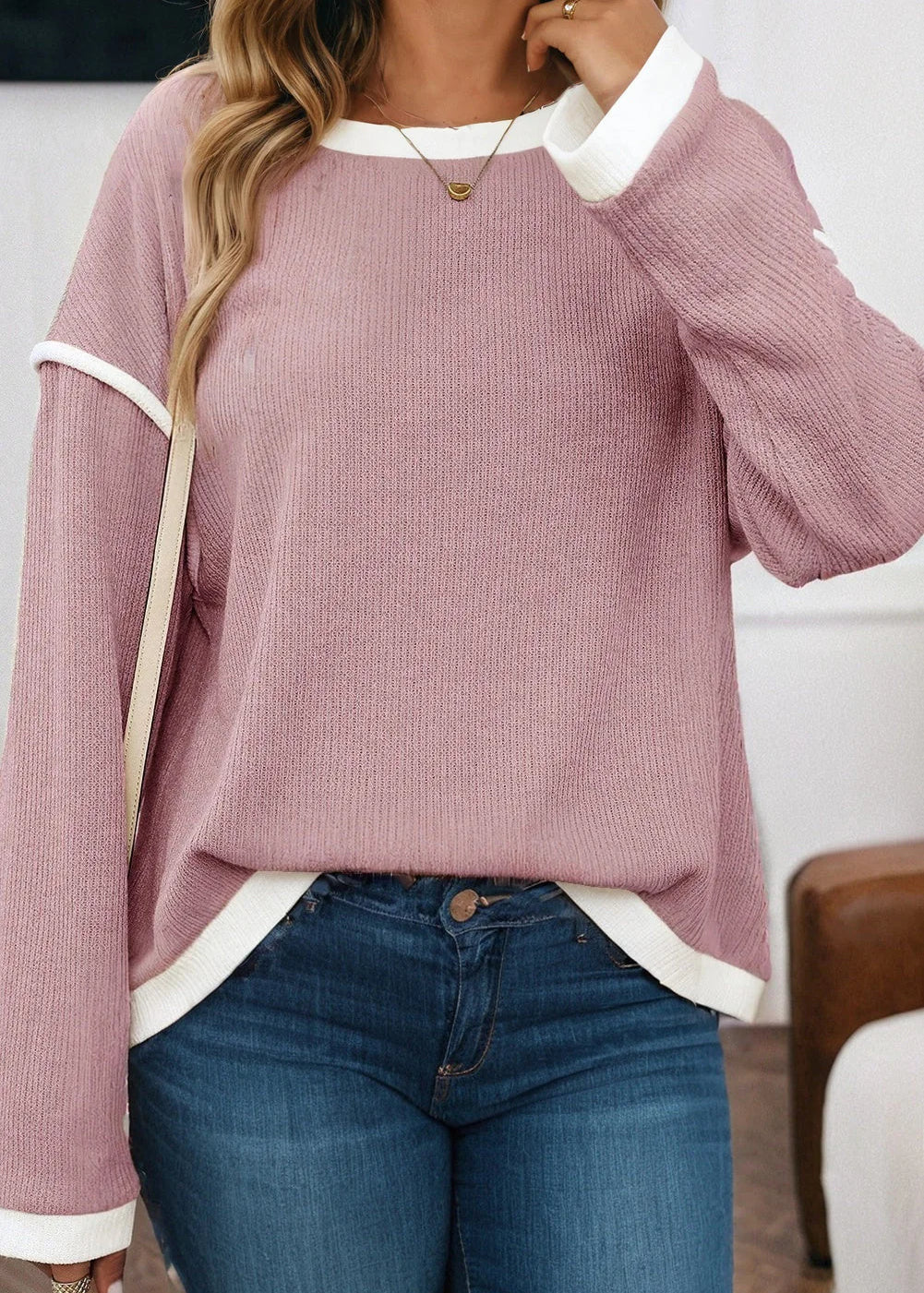 Contrast Trim Drop Shoulder Sweater (Plus)