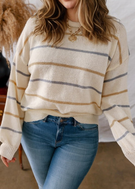 Multi Stripe Drop Shoulder Sweater (Plus)