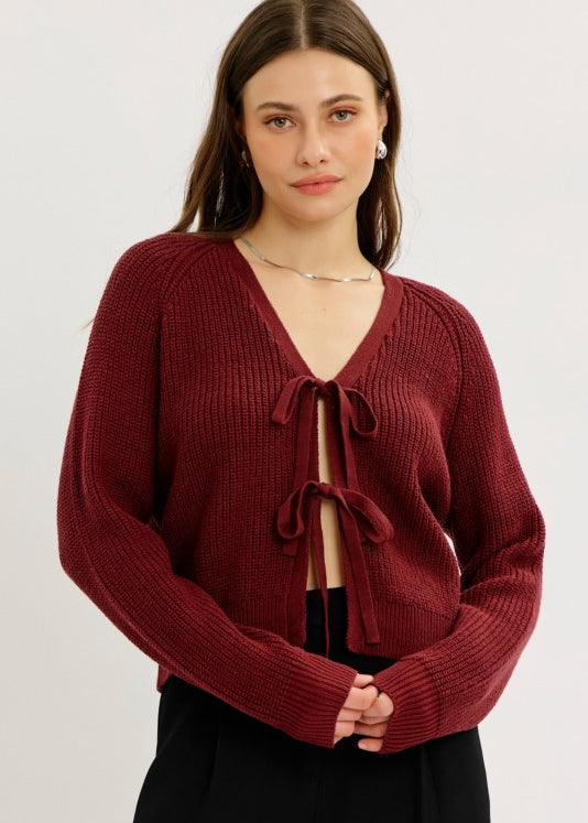 Bow Tie Cropped Sweater Cardi