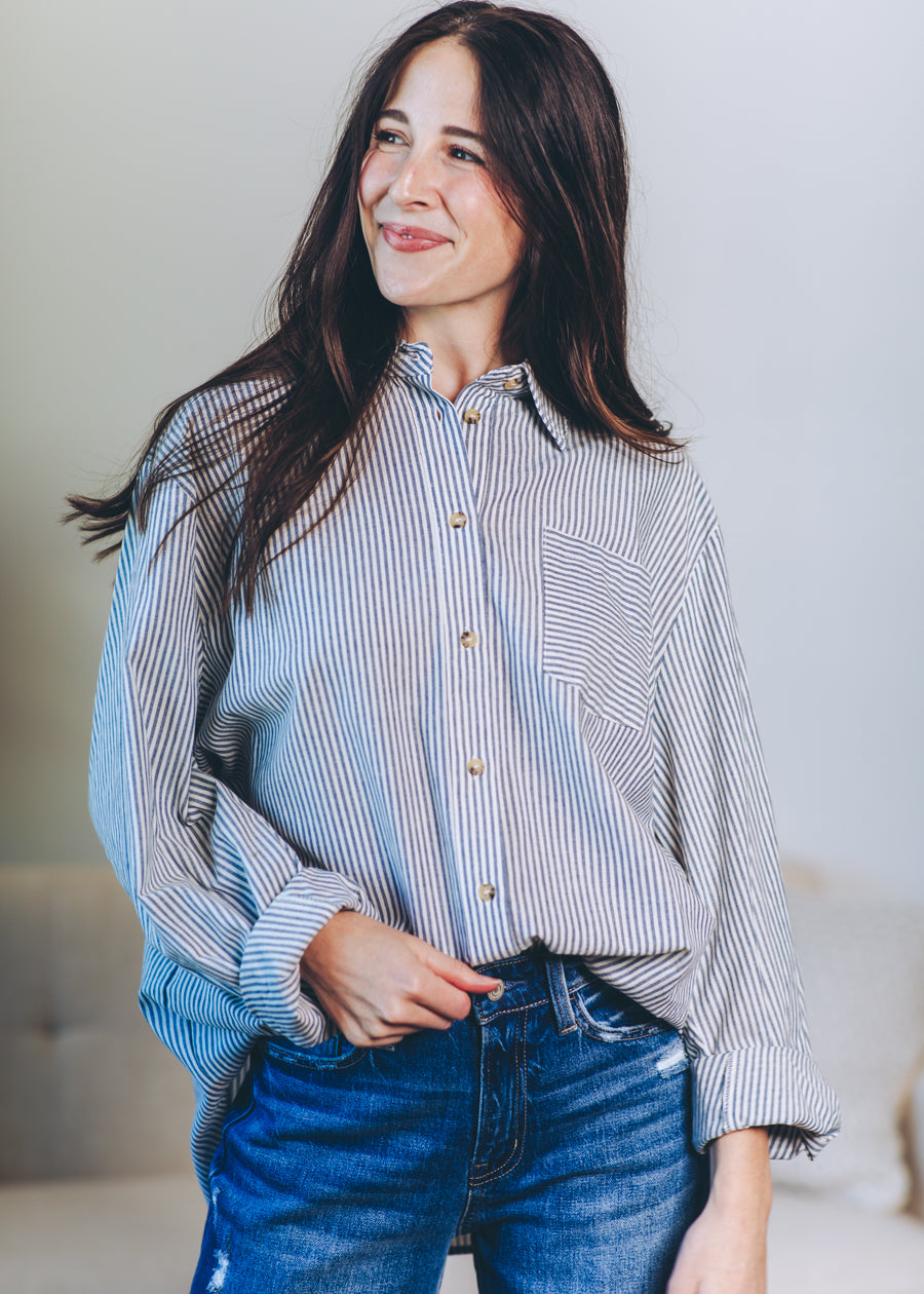 Oversized Pinstripe Button Down
