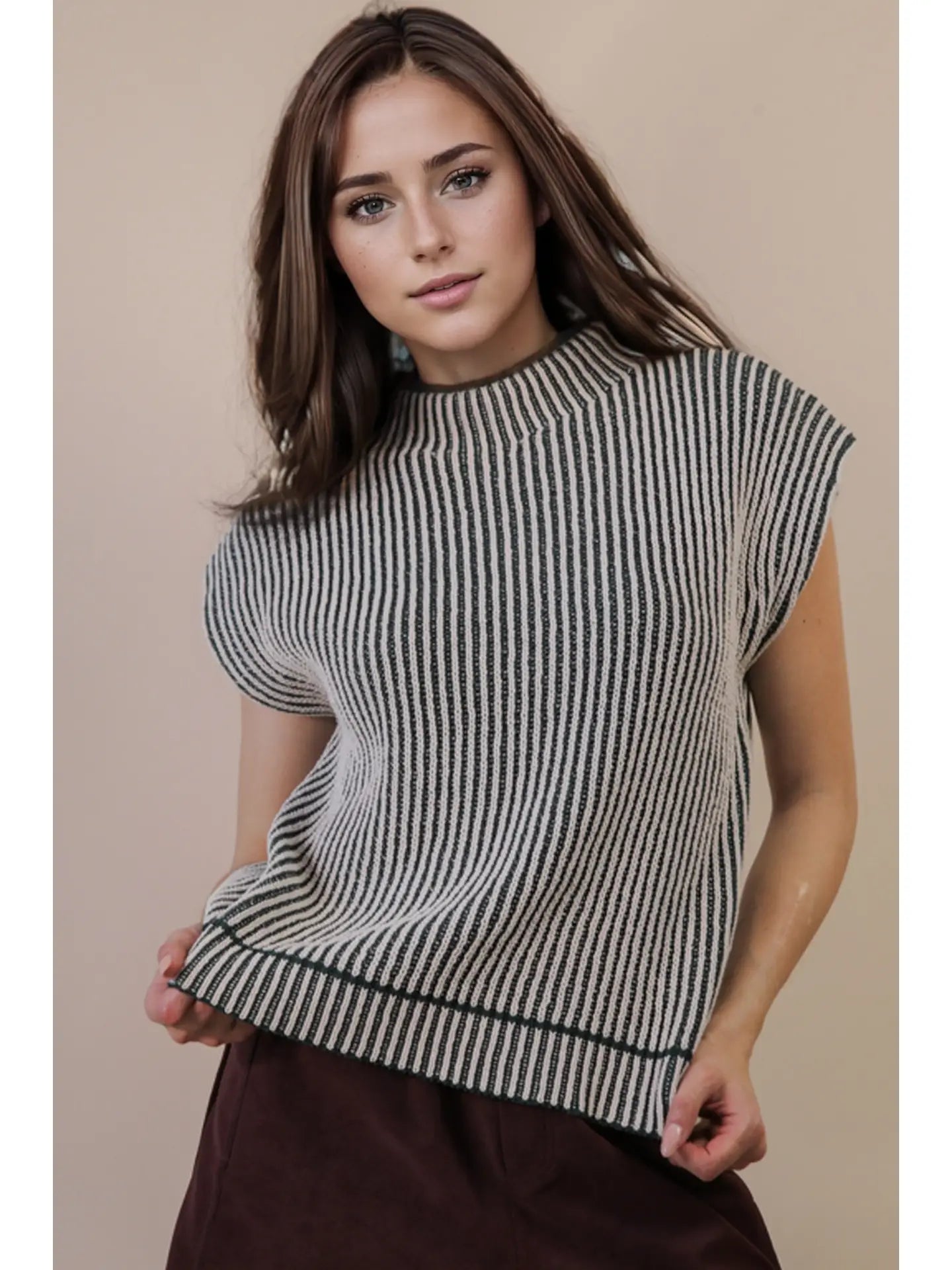 Two Tone Ribbed Sweater Vest