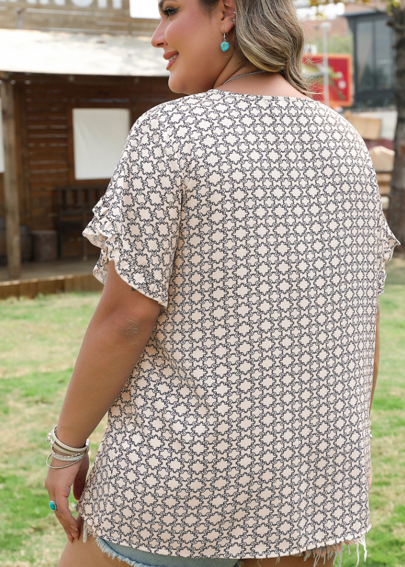 Tulip Sleeve Geo Blouse (Plus)