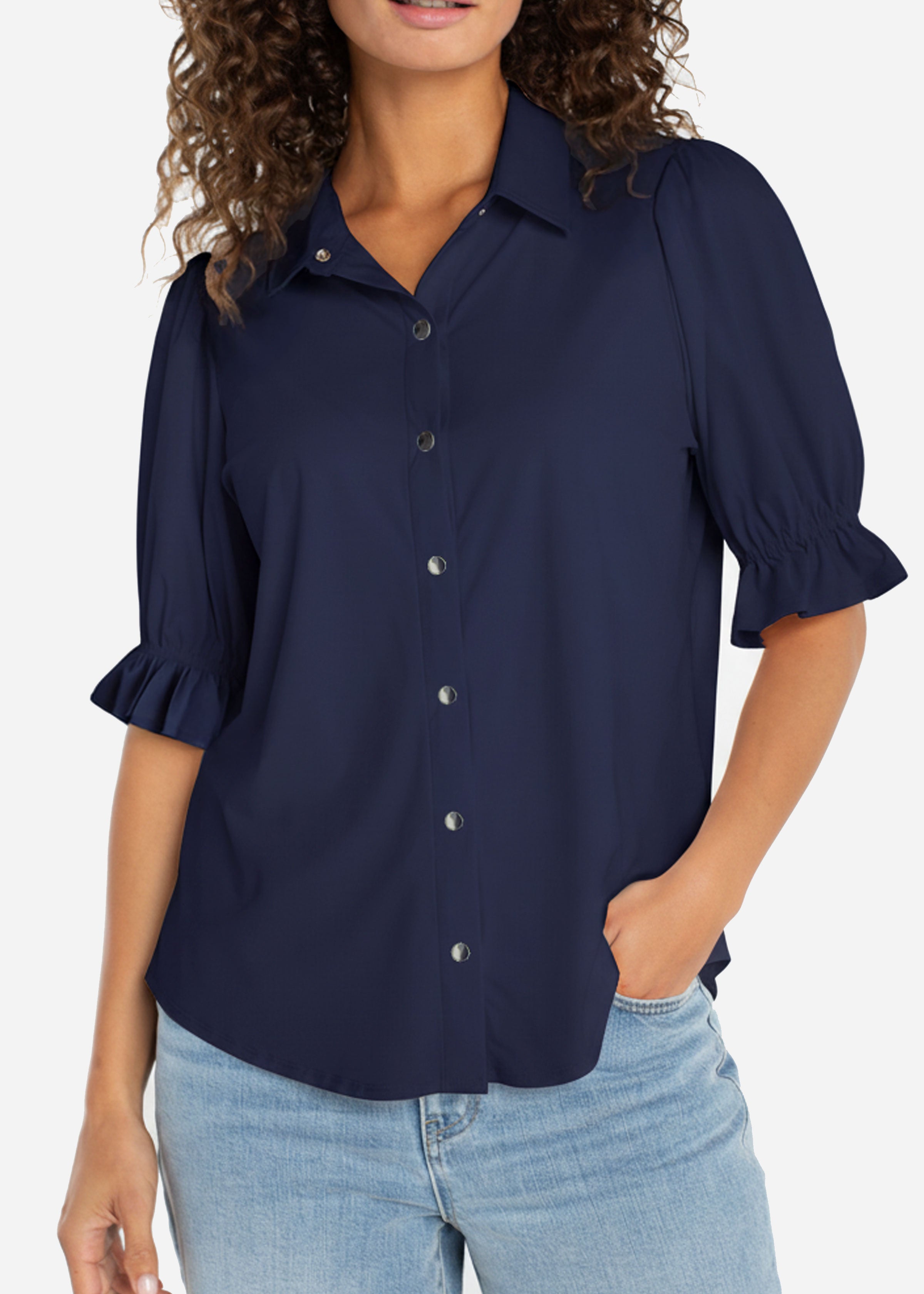 Elbow Puff Sleeve Snap Front Shirt (Liverpool)