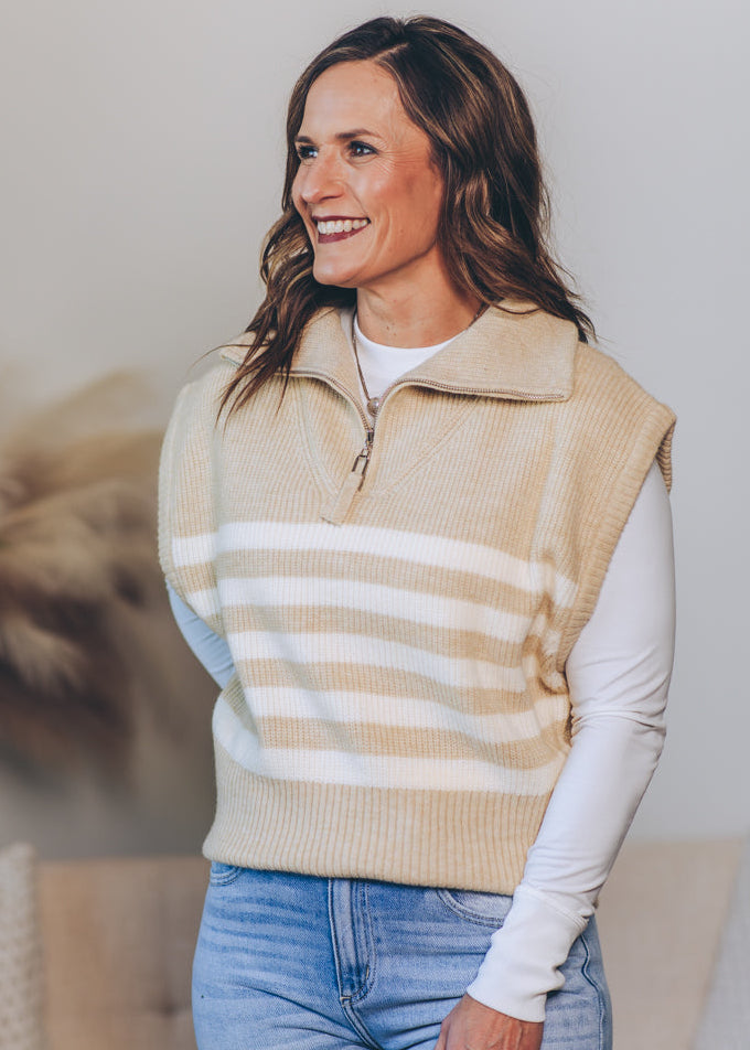 Zipped Up Striped Sweater Top