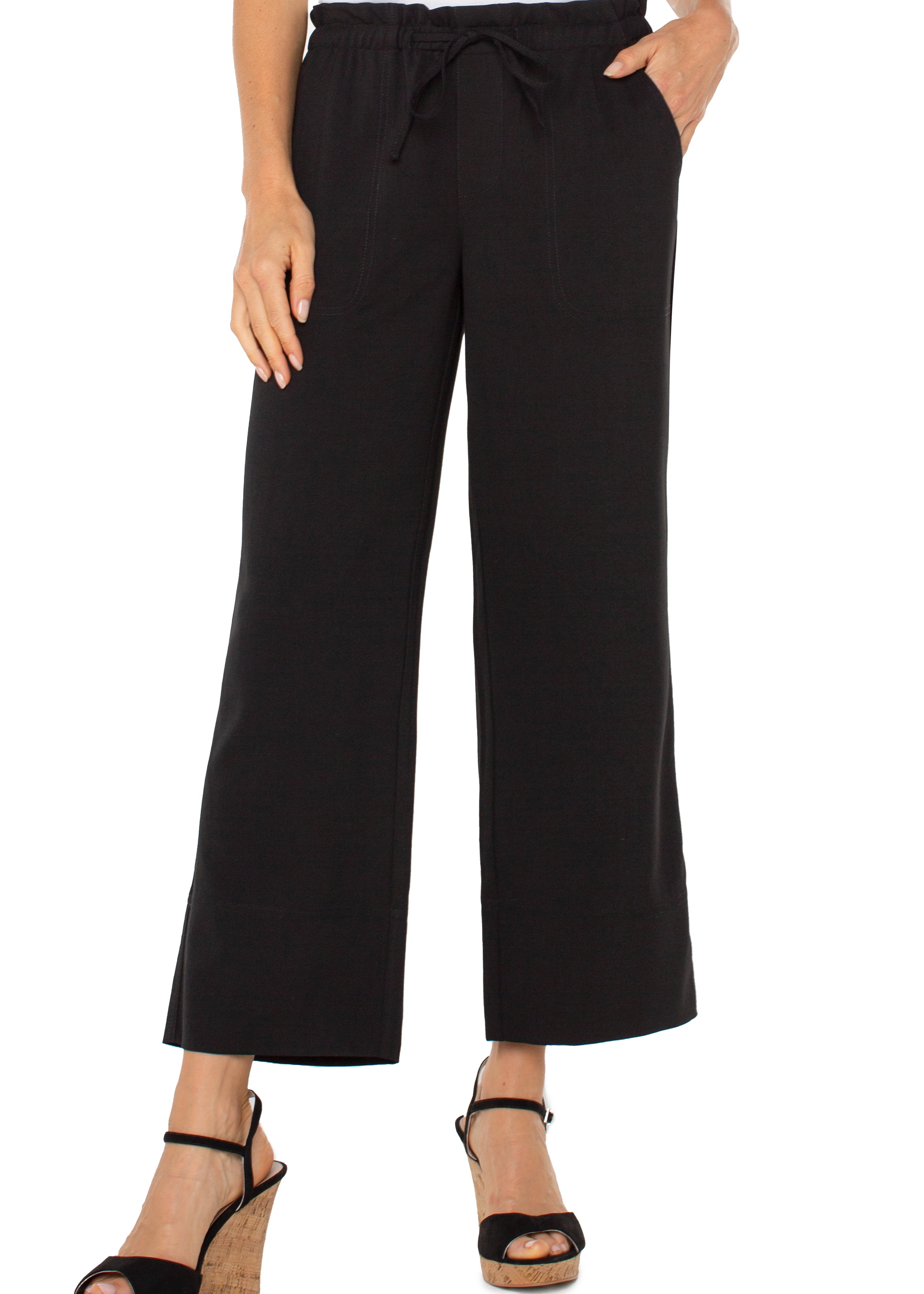 Pull On Tie Waist Wide Leg Ankle Pant (Liverpool)
