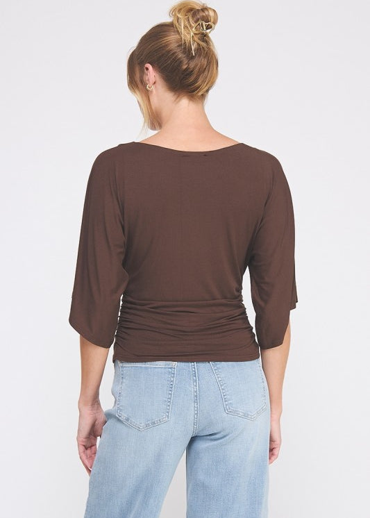 Draped Neck 3/4 Sleeve Knit Top (Liverpool)