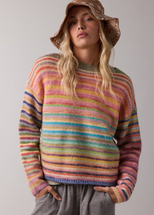 Multi Stripe Drop Shoulder Sweater (Plus)