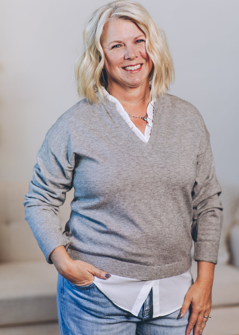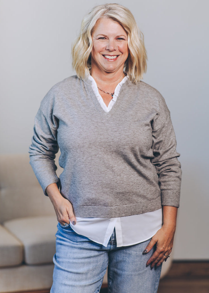 V Neck Combo Sweater