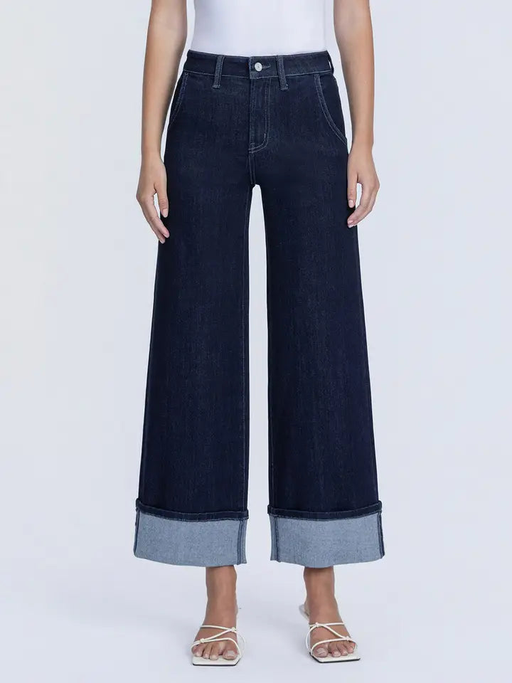 Olivia Cuffed Wide Leg Ankle Jean (Vervet)