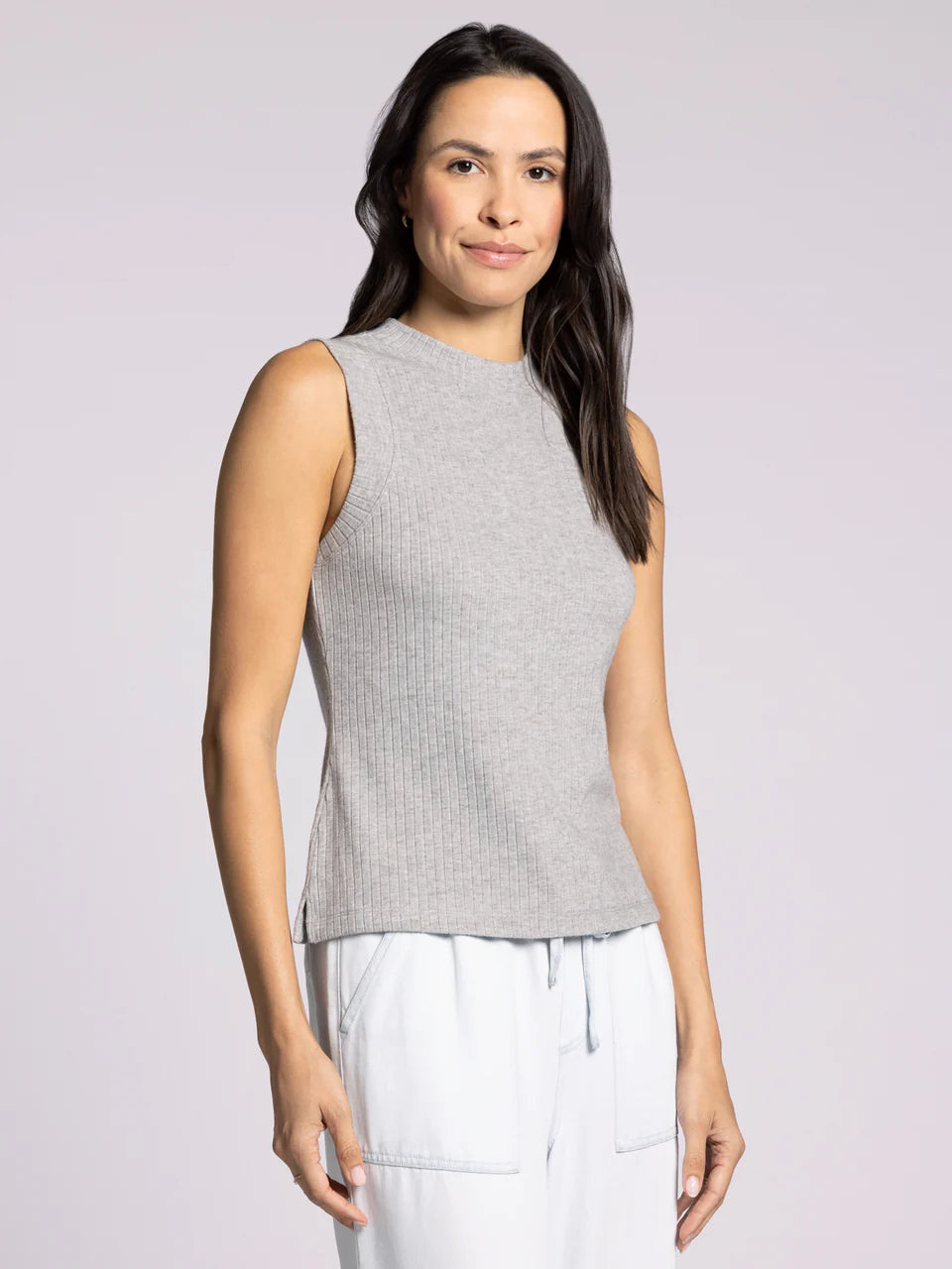 This timeless tank is a wear-anywhere kind of style, featured with a mock neck in a so-soft ribbed fabrication and side vents.
