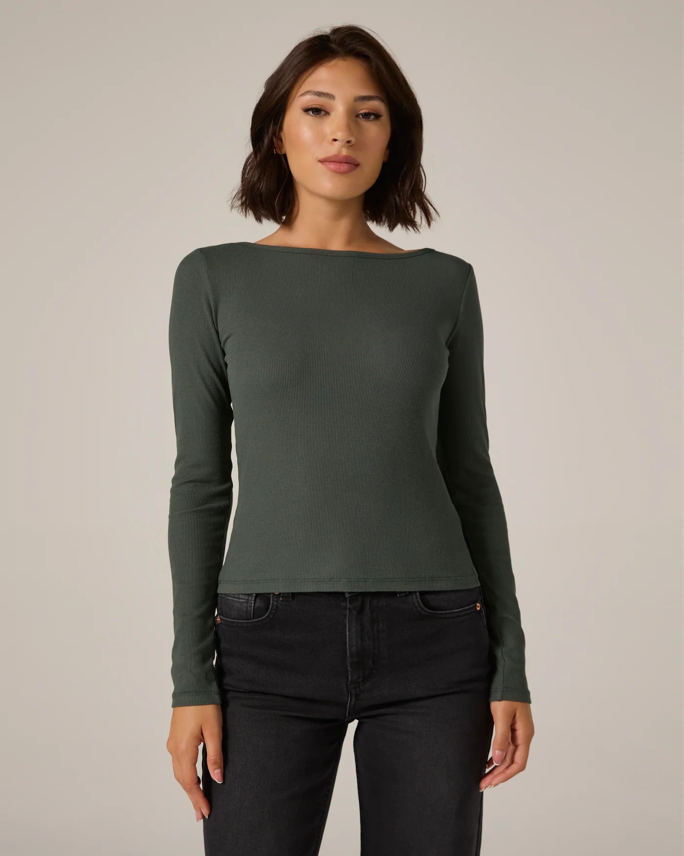 Soft, breathable, and effortlessly refined. This ribbed modal top features a flattering boatneck and a classic fit—easy to wear from coffee runs to office hours. Pairs beautifully with denim, trousers, or your favorite skirt.