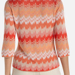 Elevate your everyday style with this charming 3/4 sleeve v-neck sweater featuring a playful chevron print. Crafted from soft, comfortable fabric, it's the perfect layering piece for transitional weather. The flattering v-neckline and three-quarter sleeves offer a modern silhouette that works beautifully with jeans, skirts, or trousers. Whether you're heading to the office or out for casual adventures, this versatile sweater brings a touch of fun to any outfit.