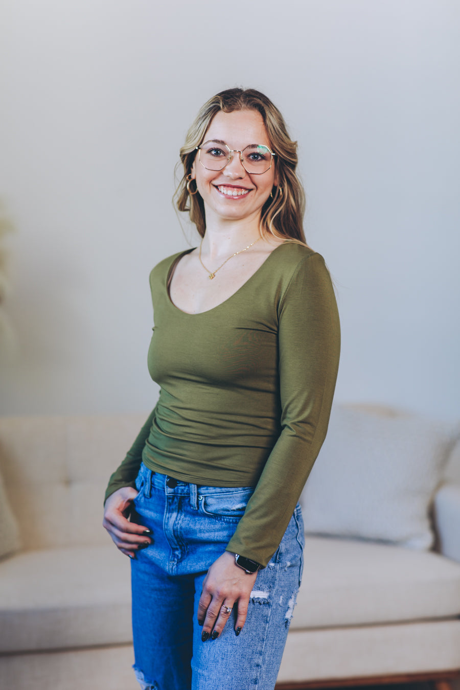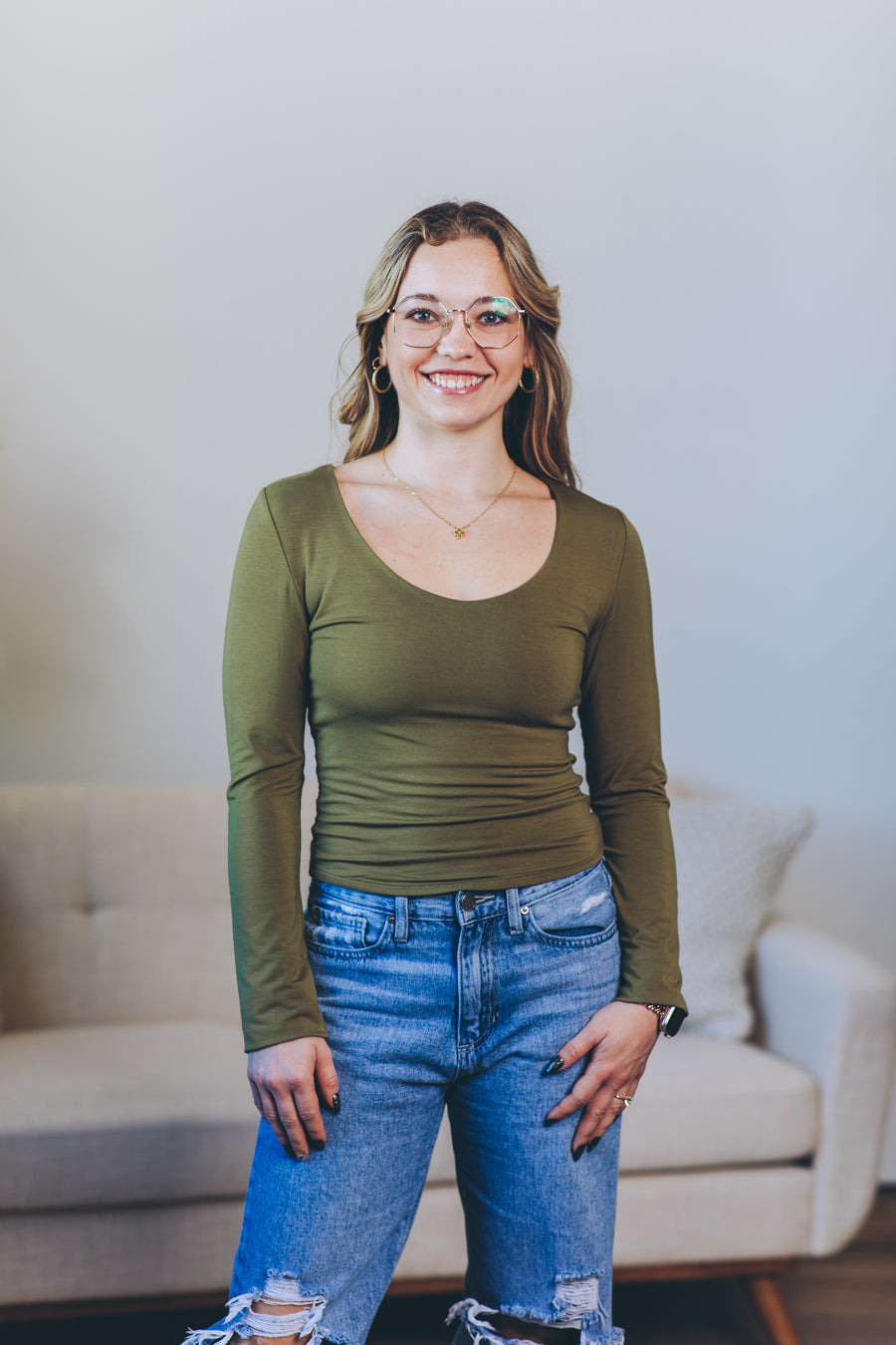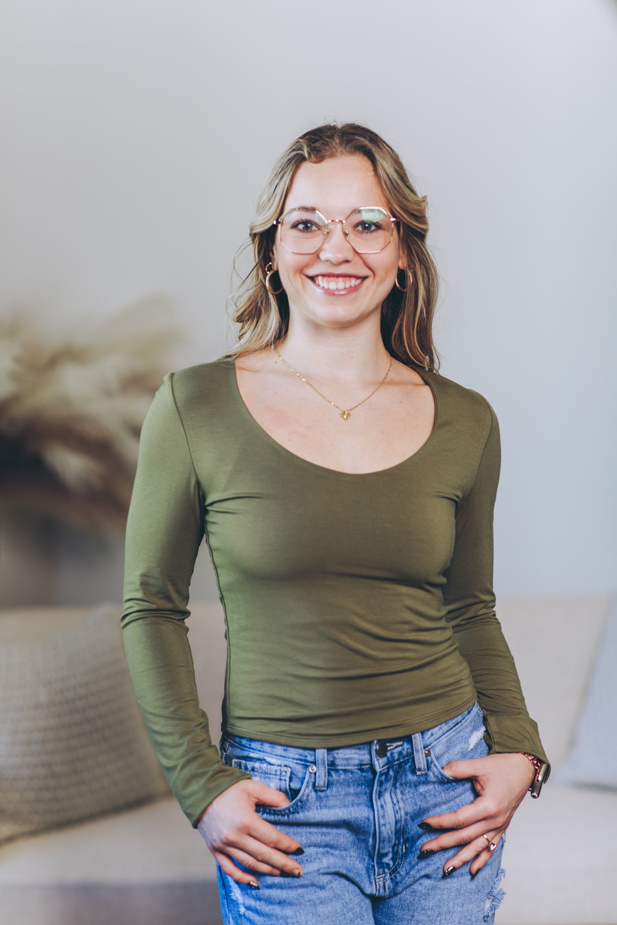 About The Basics Scoop Neck Long Sleeve