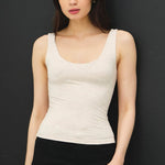 This scoop neck tank is an everyday essential, perfect for any occasion. Made of soft and stretchy jersey material with a fitted silhouette, it provides both comfort and style. Its double-lined construction and spandex make it a must-have for any wardrobe. Try it for yourself!