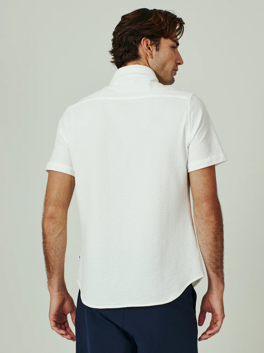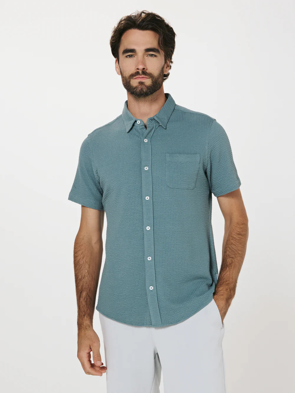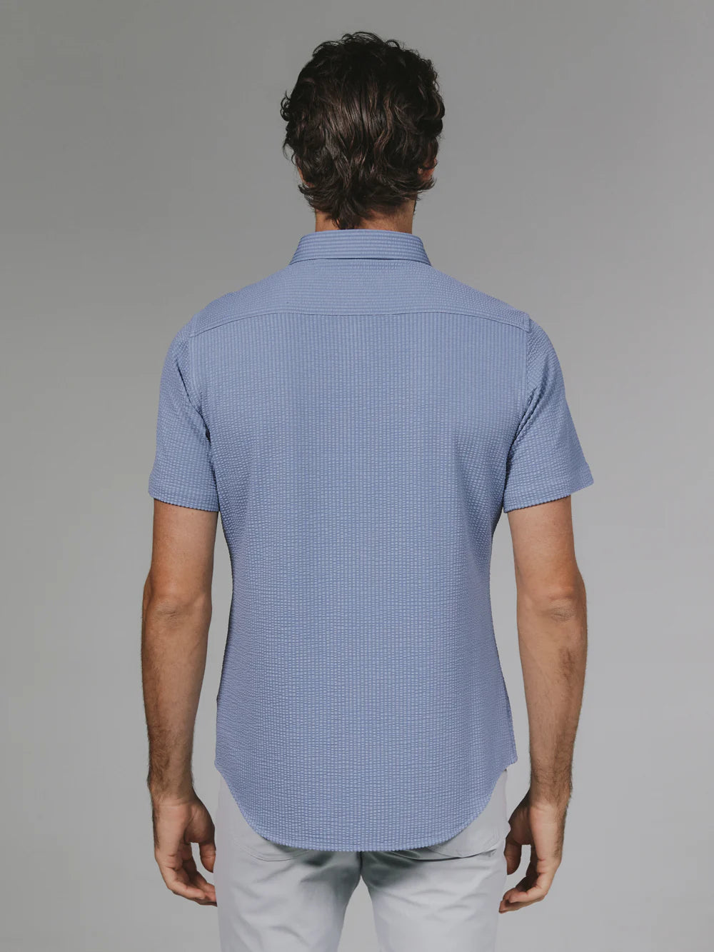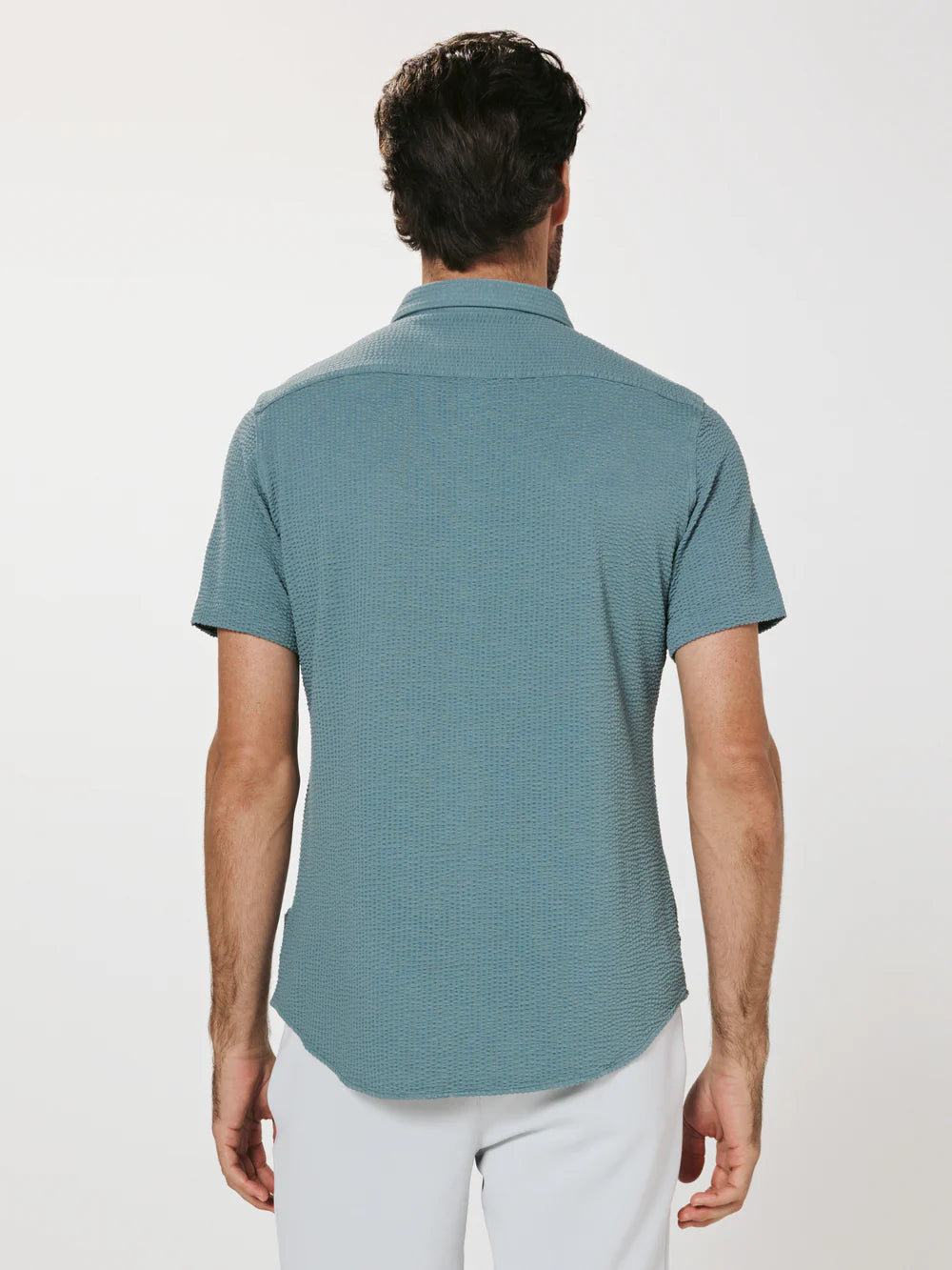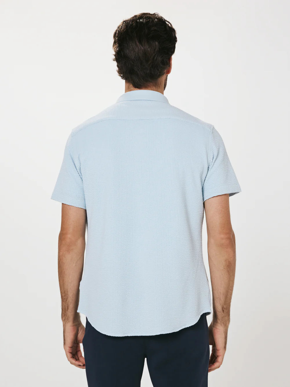 A modern twist on the classic seersucker shirt. Crafted with a nylon fabric blend that allows a super soft hand-feel and incredible stretch. Cool to the touch, airy, and breathable — making it the perfect summer staple.