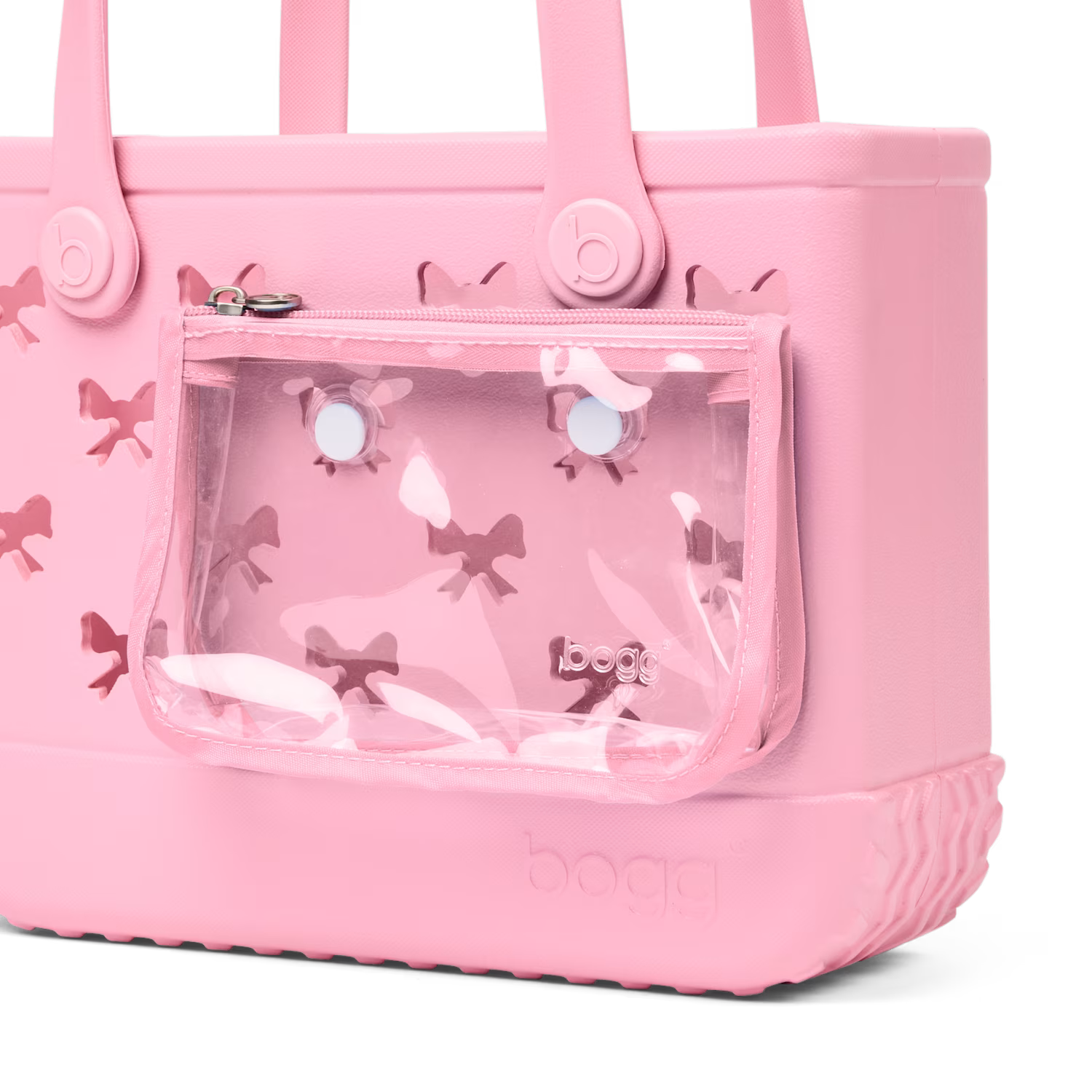 Includes a small clear pouch for storing little essentials like keys, lip balm, or hand sanitizer.