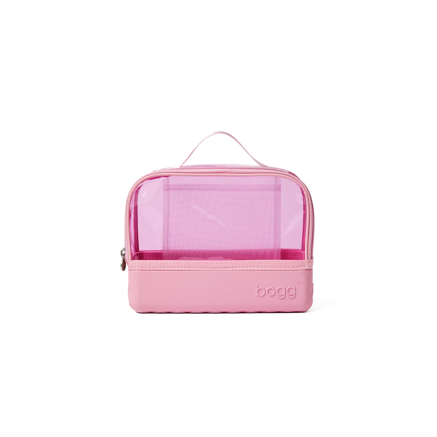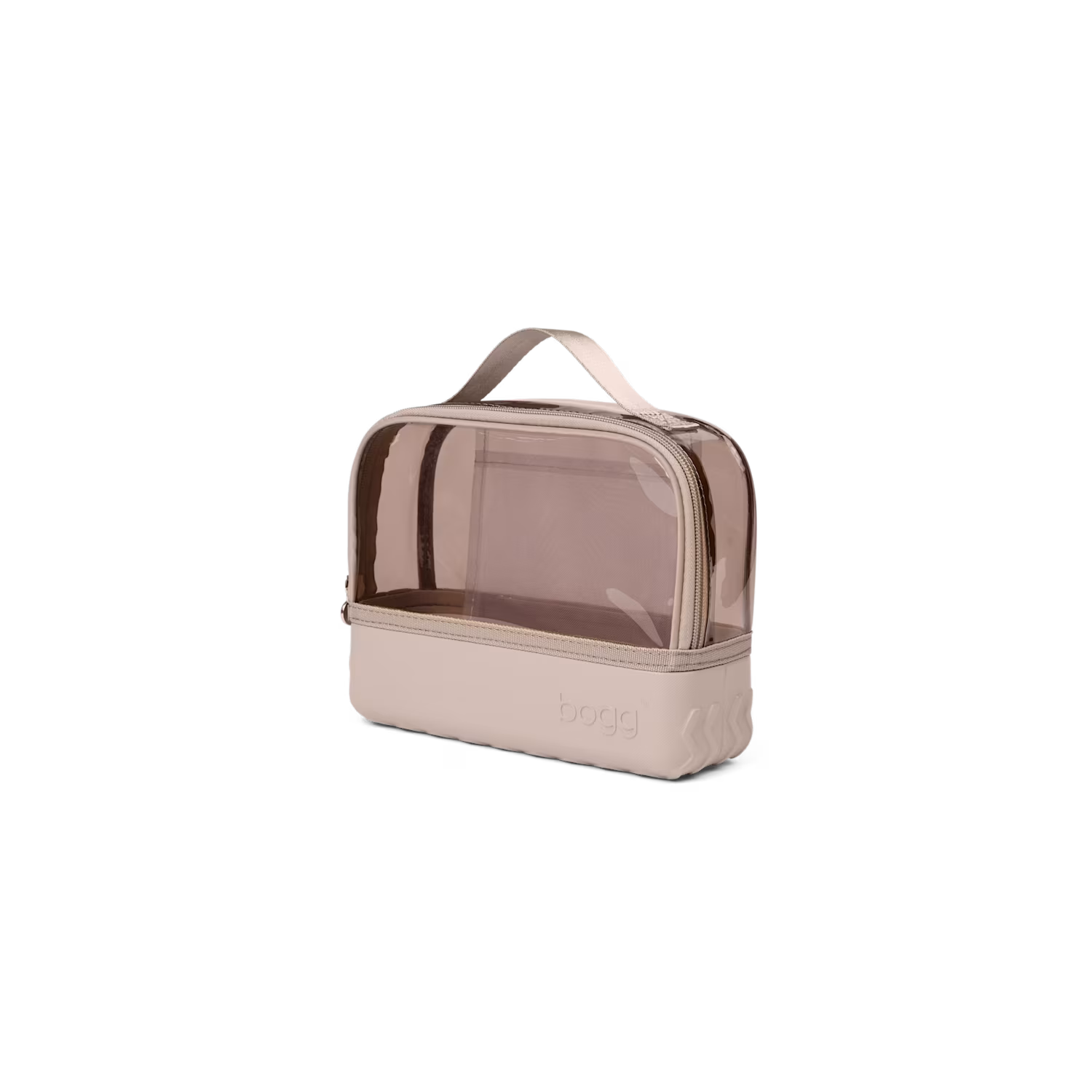 Compatible with all three Bogg Bag sizes, it features our signature tread base for tip-proof stability on vanities, counters, and shelves. A transparent topper, interior slip pocket, and wide U-shaped zipper make it easy to see and grab what you need. Finished with a sturdy top handle for grab-and-go convenience.