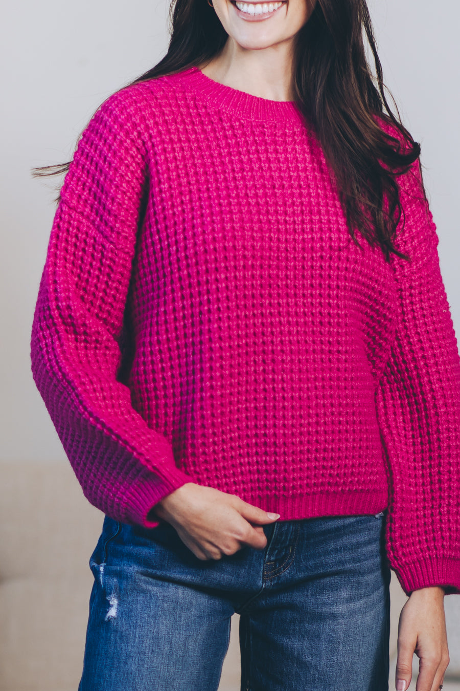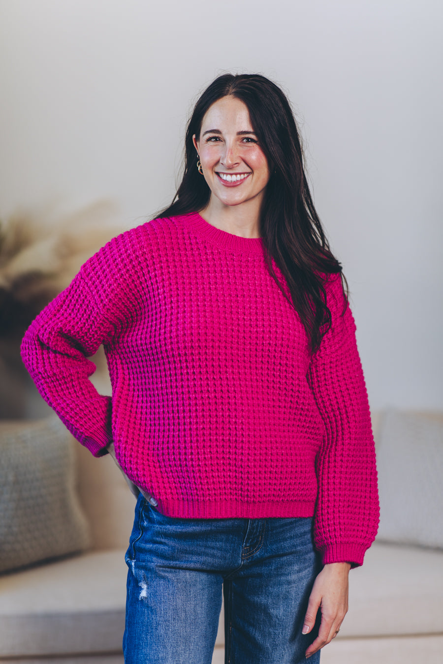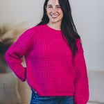 Cozy up in the Boston Waffle Knit Pullover—your new go-to sweater for cool days! With a soft blend of acrylic, polyester, and nylon, this ribbed crew neck long-sleeve top offers warmth without weighing you down. Its waffle knit texture adds playful charm while keeping you snug for any adventure or lazy day lounging.