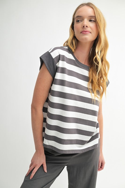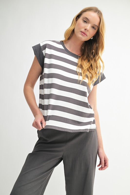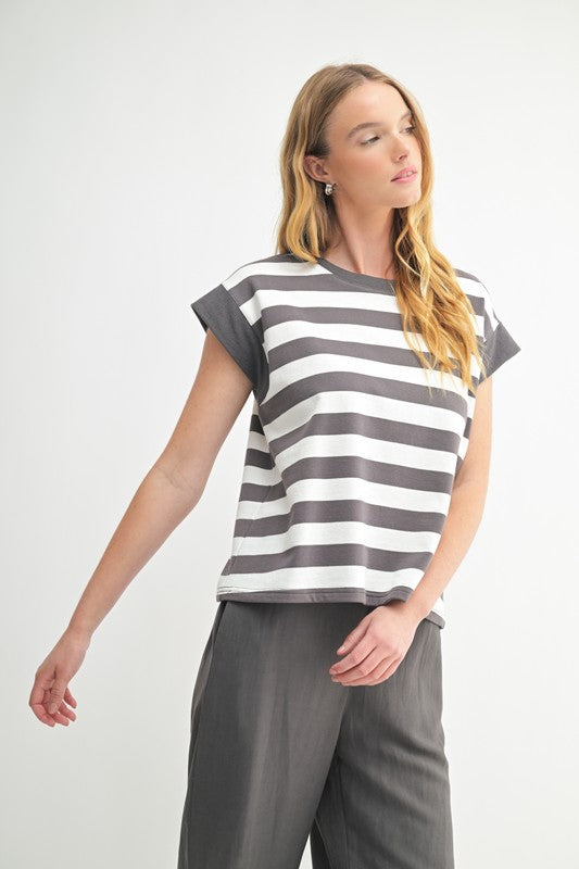 Boxy & Striped Knit Terry Tee