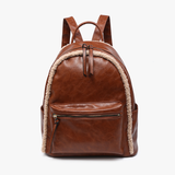 Bria merges the coziness of sherpa with the luxe touch of vegan leather. This spacious backpack, accented by glistening gold-tone hardware, promises not just function but also undeniable style. Adjust its straps to achieve your preferred comfort, and let this chic accessory be your trusty companion for every outing! Features plenty of outside and inside pocket space for all of your necessities.