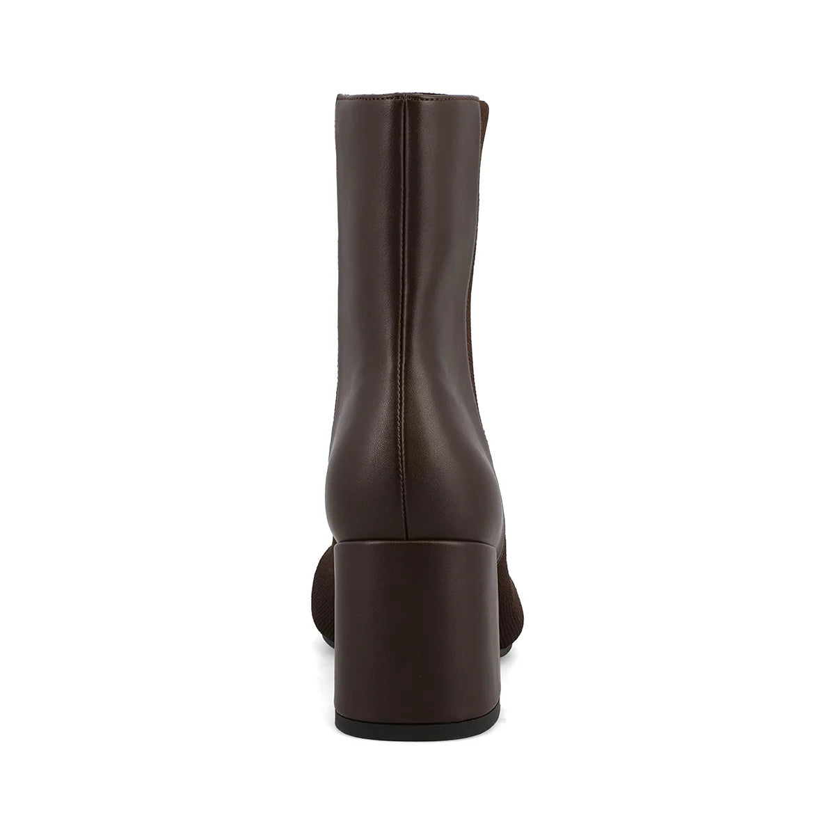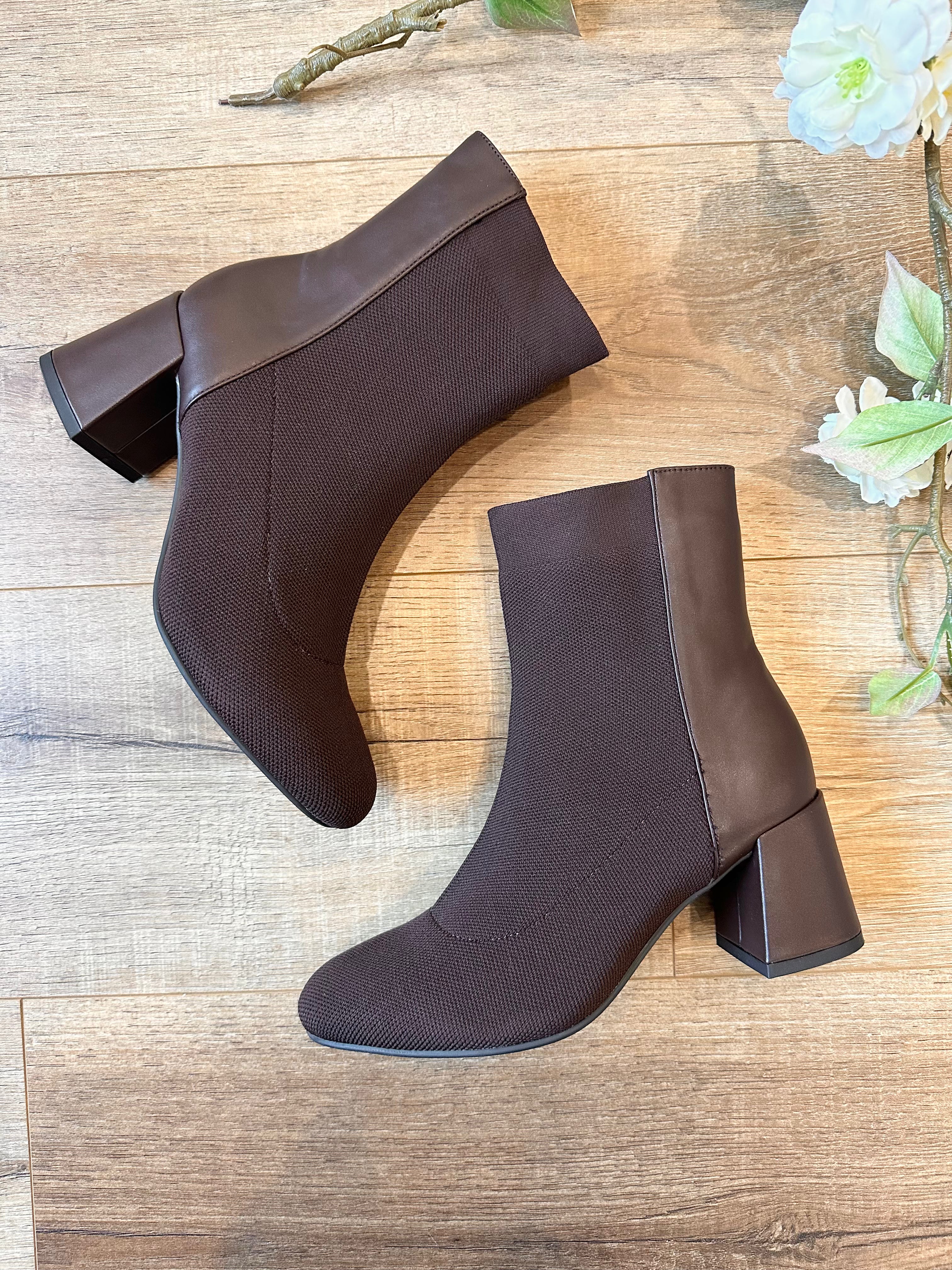 Step into the season with confidence with Bronwen. This boot features a modern square heel and a sleek combo of vegan leather and a stretch-knit material for a perfect balance of structure and flexibility. Finished on a 2.5-inch heel for the perfect height.