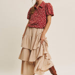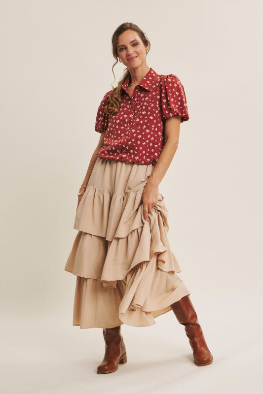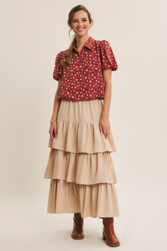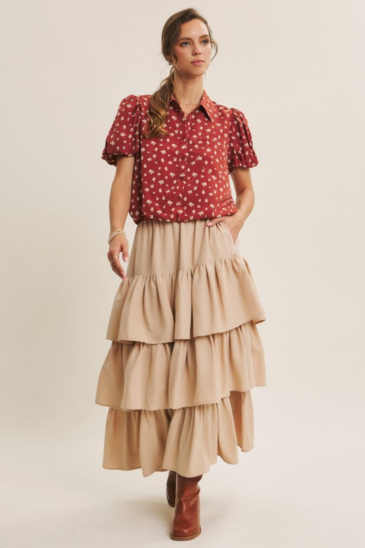 Brighten your day with the Brunch Date Bubble Hem Blouse, featuring a cheerful floral print and playful bubble hem that adds a fun twist to your look. Its button-down design and collared neck keep it classic, while short bubble sleeves and a convenient bust pocket bring charming details to your outfit. Perfect for relaxed weekends or casual brunches, this blouse combines comfort with a flirty flair.