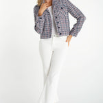 Classic workday tweed brings polish to this desk-to-dinner jacket updated in a cool cropped fit.