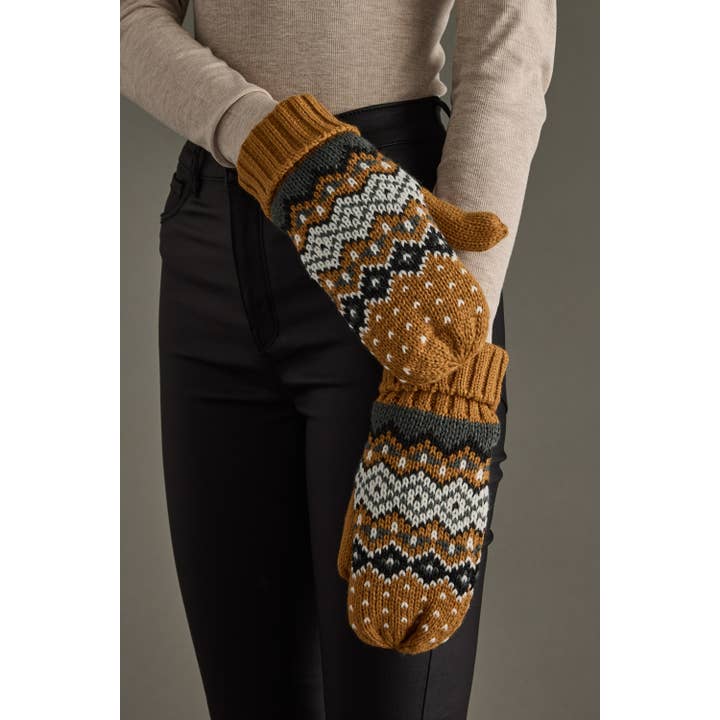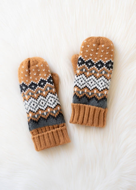 Stay cozy with these eye-catching patterned mittens featuring a striking mix of camel, black, white, and blue. Crafted from soft acrylic with a plush fleece lining, they deliver warmth without the bulk. The one-size-fits-most design makes them perfect for gifting or keeping on hand for chilly days. Whether you're bundling up for winter adventures or just running errands around town, these mittens bring a pop of color and serious comfort to your cold-weather rotation.