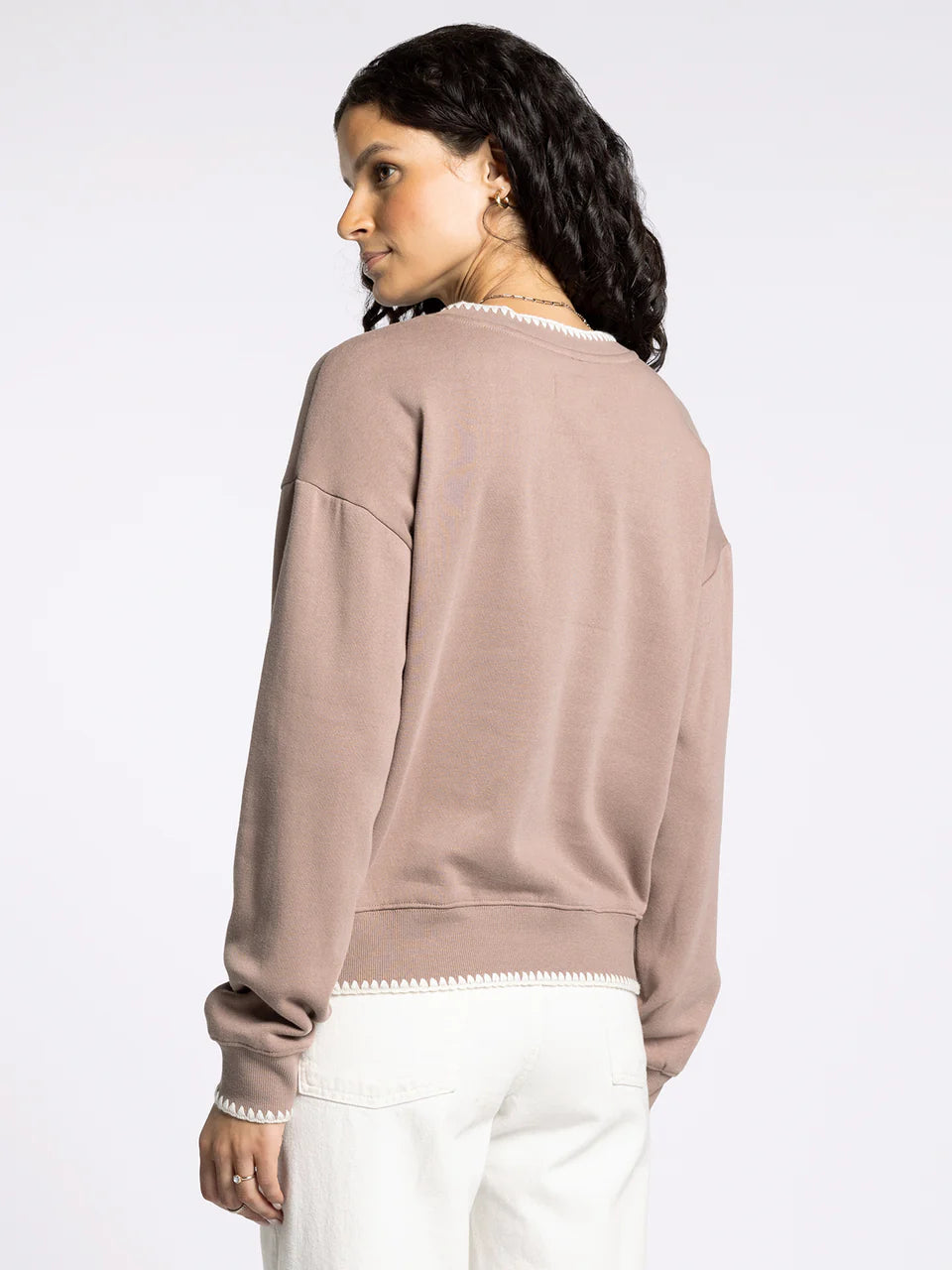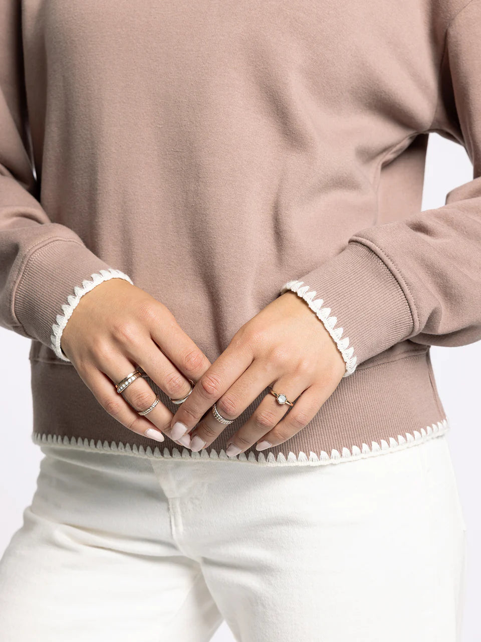 Cozy up in this so-soft pullover featured in a contrast stitch detail crew neckline for a classic silhouette you'll reach for over and over again.