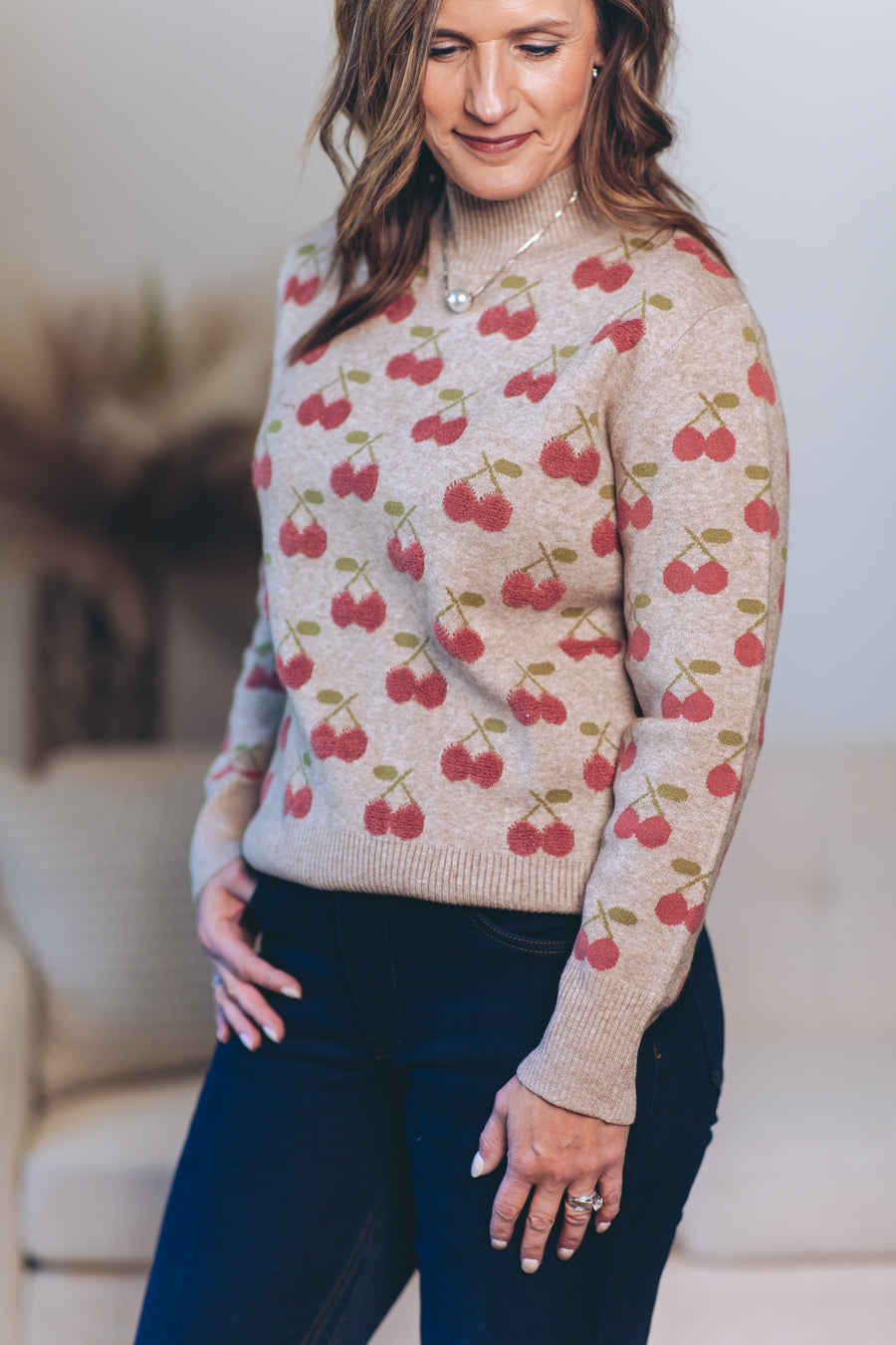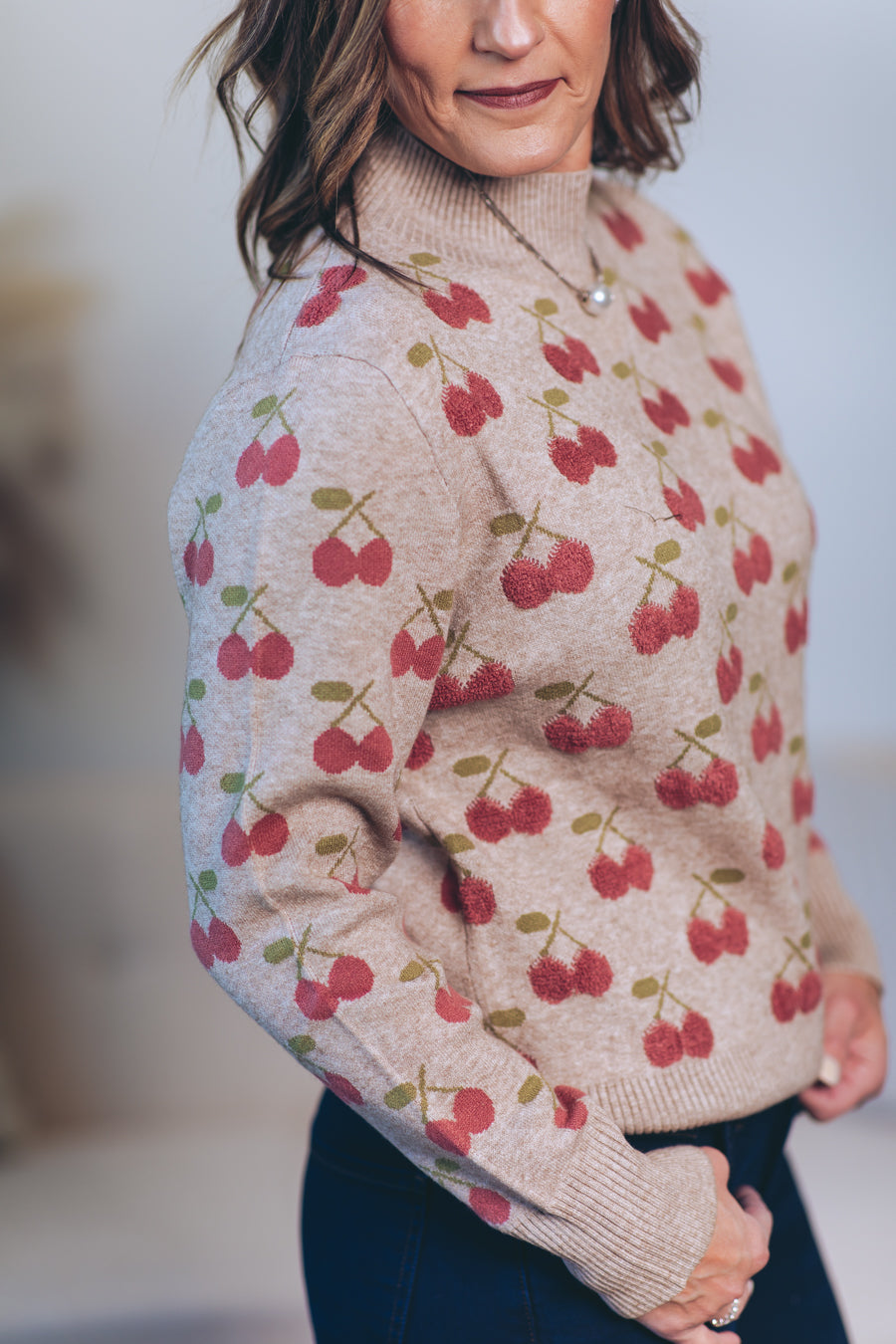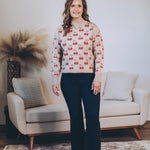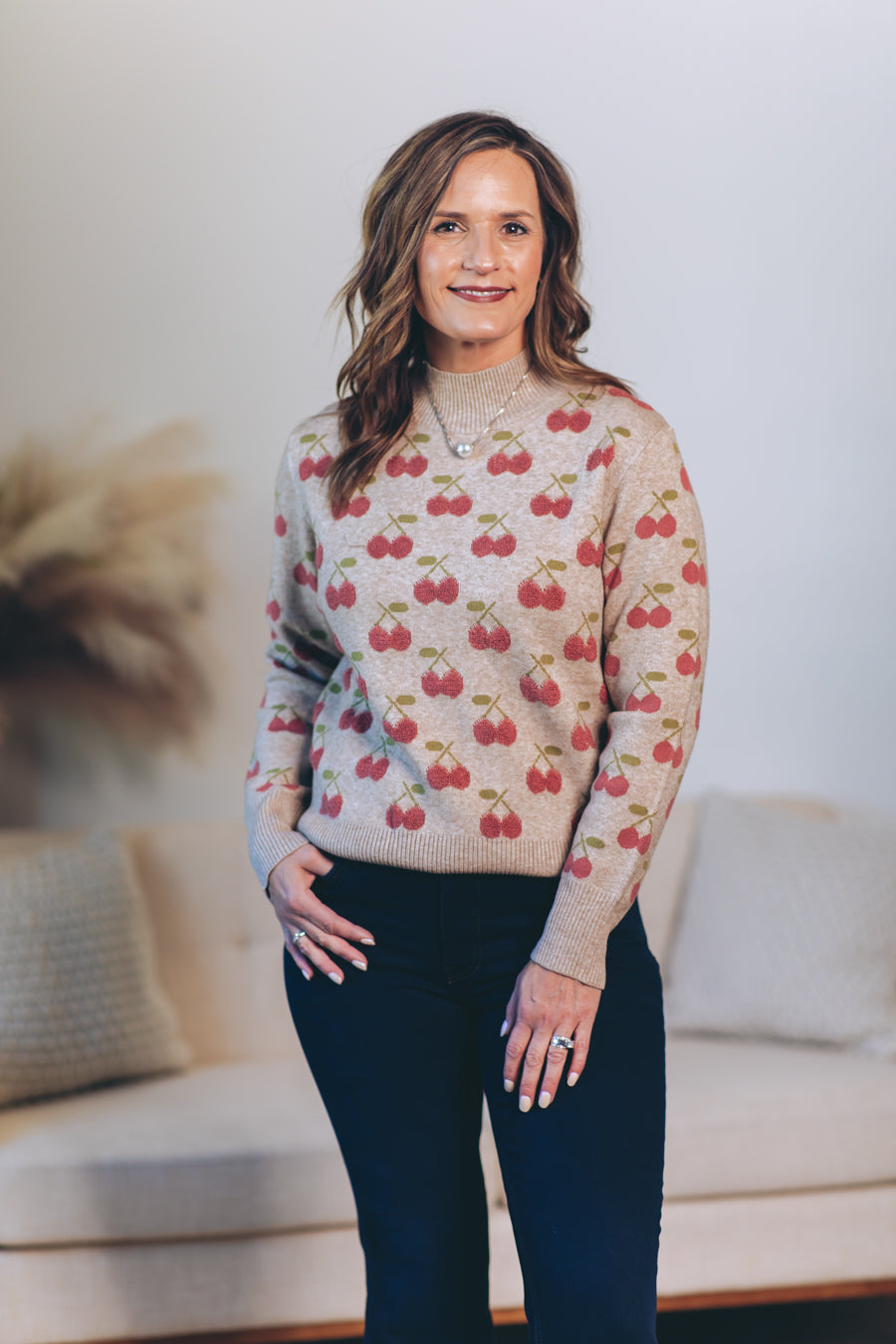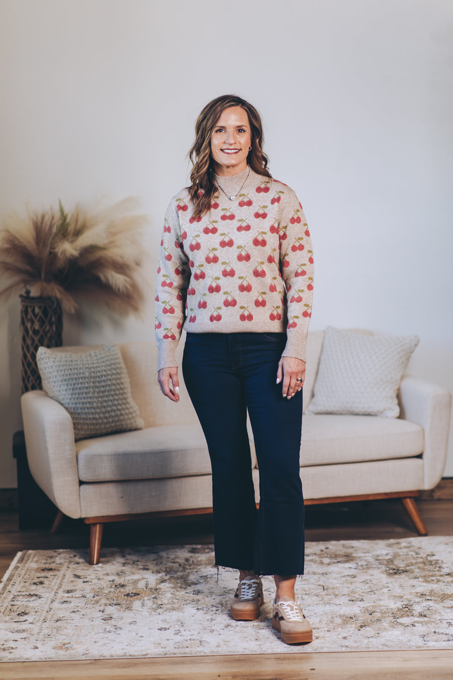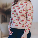 The Cherry On Top Sweater brings a playful touch to your wardrobe with its adorable cherry print and cozy fabric. Designed to hit right at the waist, it offers a flattering fit that’s perfect for casual days or lounging in style. Add a pop of fun and comfort to your look with this sweet, easy-to-wear sweater.