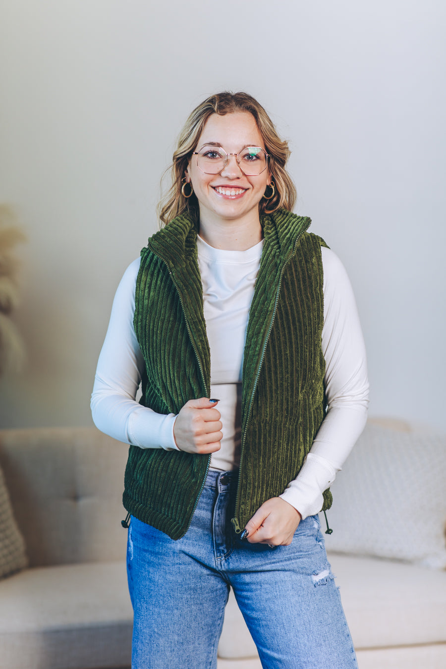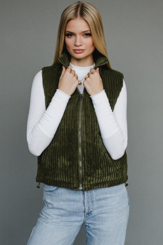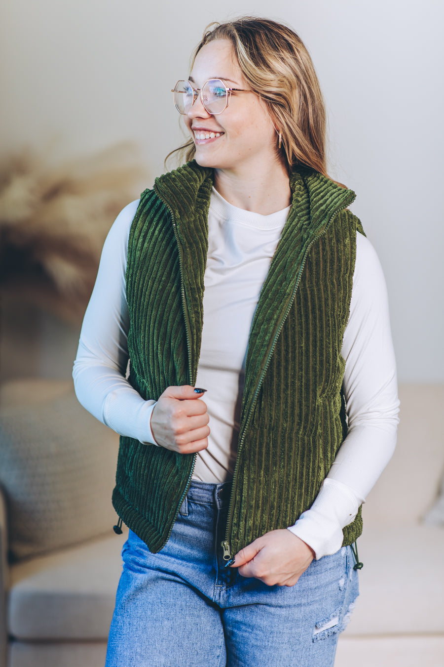 Stay cozy and stylish with the Christine Corduroy Vest! Featuring a front zipper and snap closure, it’s easy to layer and secure. Two handy side pockets keep your essentials within reach while the soft fabric adds a comfy touch to any outfit. Perfect for adding warmth with a playful twist!