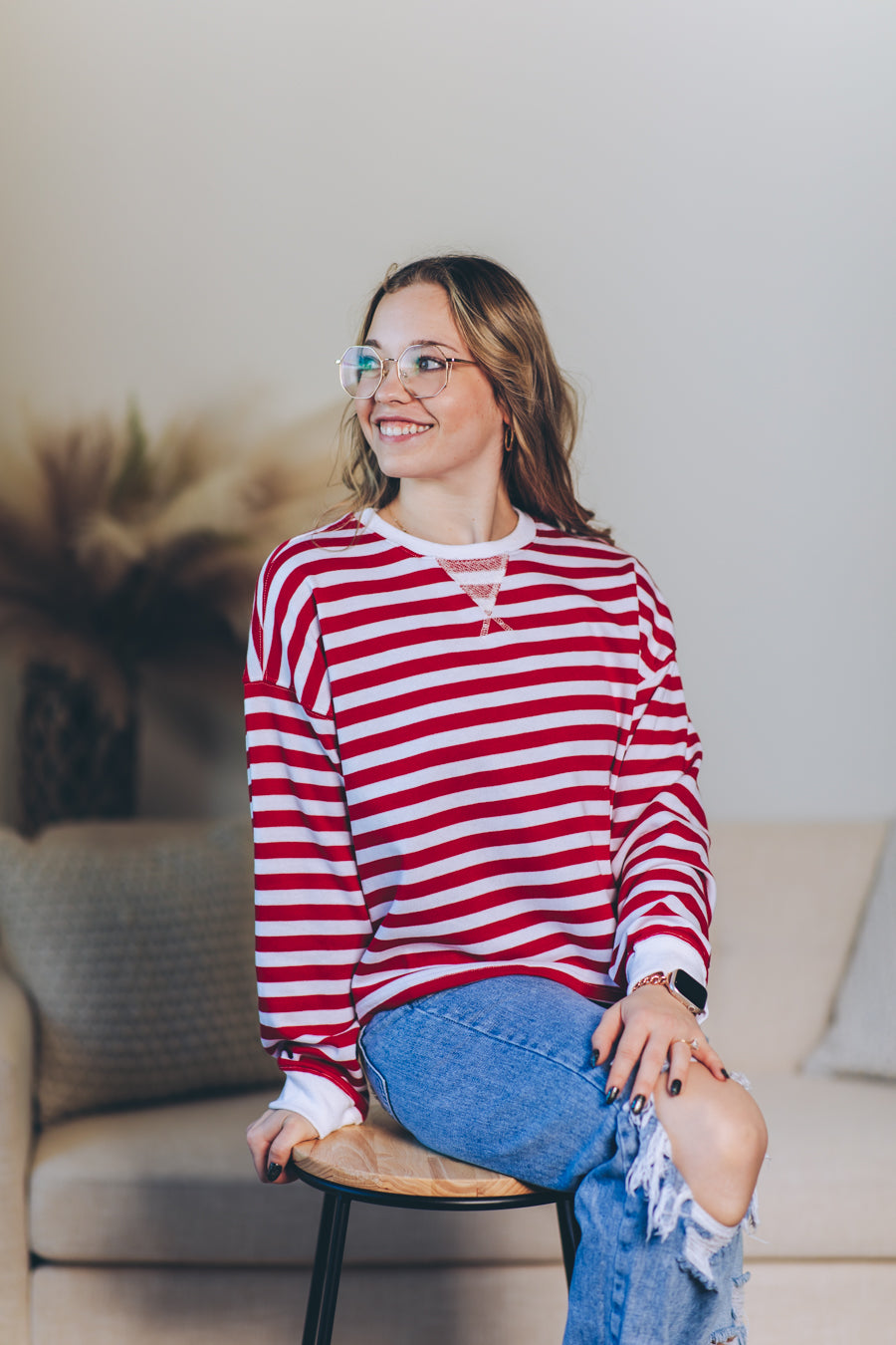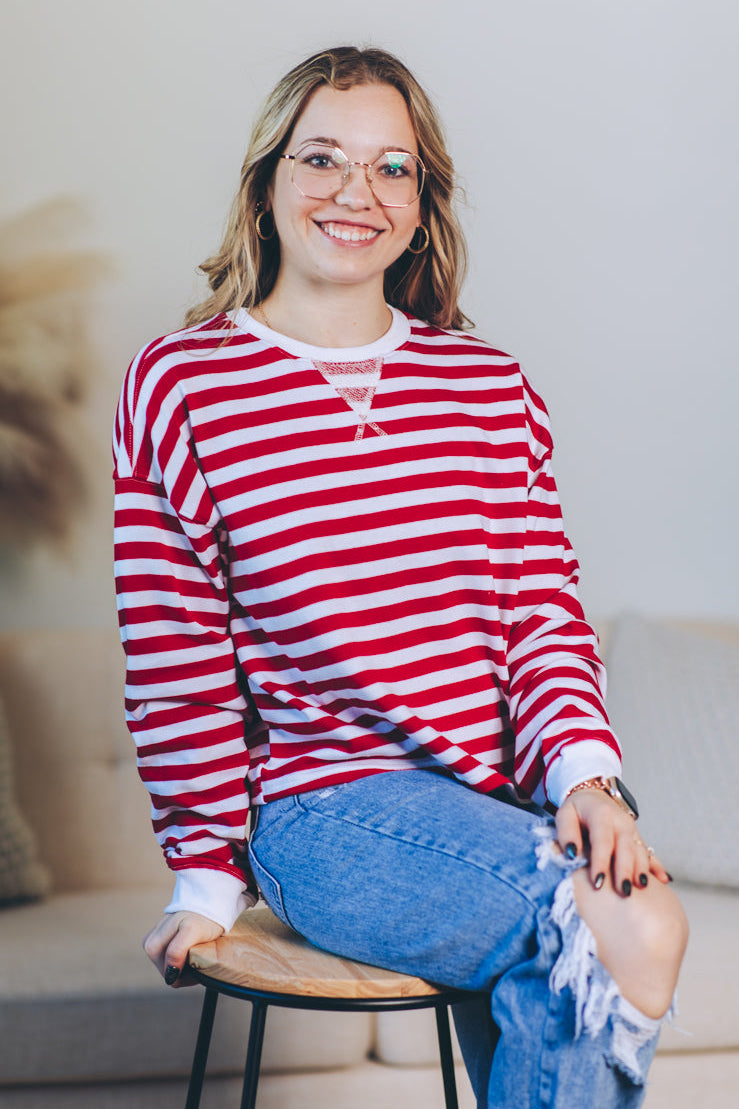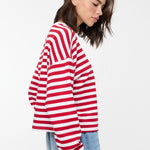 Brighten up your wardrobe with the Contrast Stripe Relaxed Knit Top. Its playful stripes and comfy relaxed fit make it perfect for casual days or laid-back evenings. The cropped length adds a fun twist, pairing effortlessly with your favorite high-waisted jeans or skirts for an easy, stylish look.