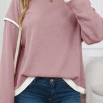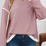 Contrast Trim Drop Shoulder Sweater (Plus)