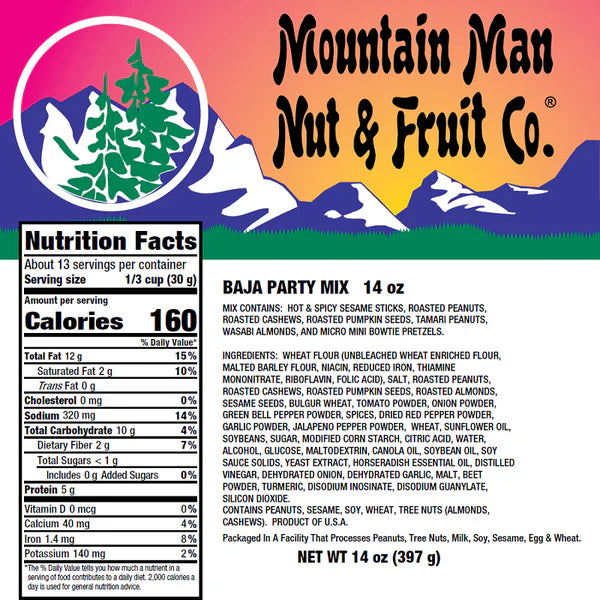 Start a party in your mouth with this mix. A combination of cashew pieces, roasted and salted Virginia peanuts, wasabi almonds, wasabi peanuts, roasted and salted pumpkin seeds, zesty sesame sticks, and pretzel balls. This mix will satisfy any crunchy cravings.