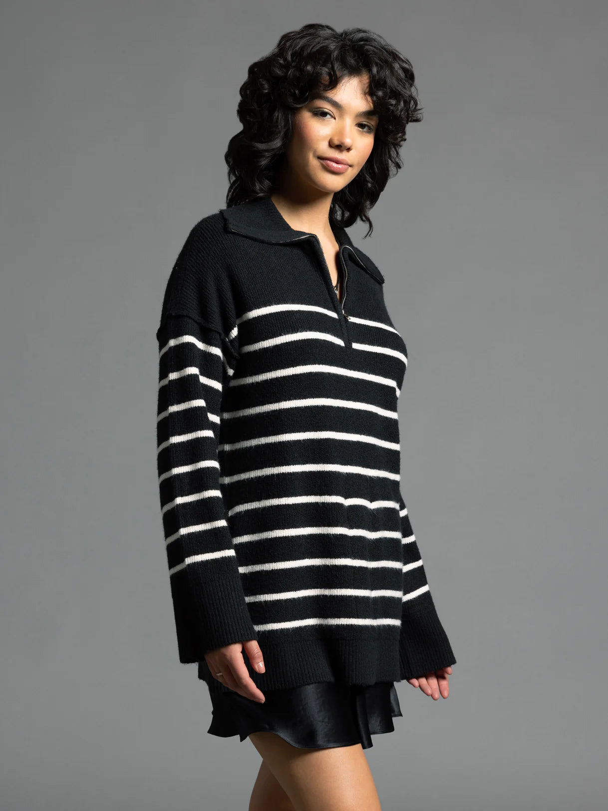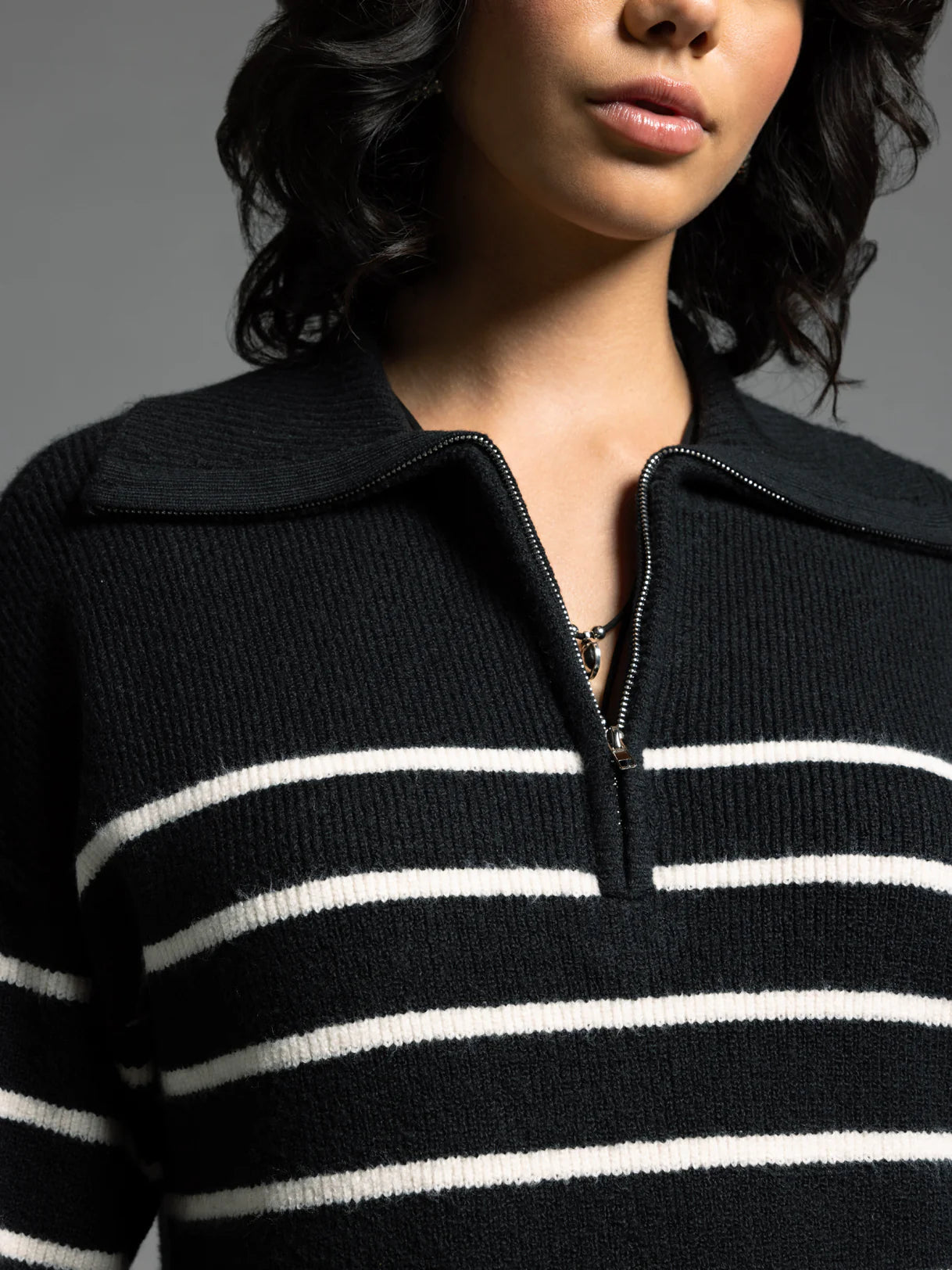 The Coralie Sweater is your new go-to layer for effortless style. This cozy knit features a sharp collared neckline that dresses up any casual outfit, while the half zipper closure lets you adjust your vibe throughout the day. Practical side pockets keep your essentials within reach, because who doesn't love a sweater that actually works as hard as you do? Perfect for layering or wearing solo, it's the kind of piece that makes getting dressed actually fun.