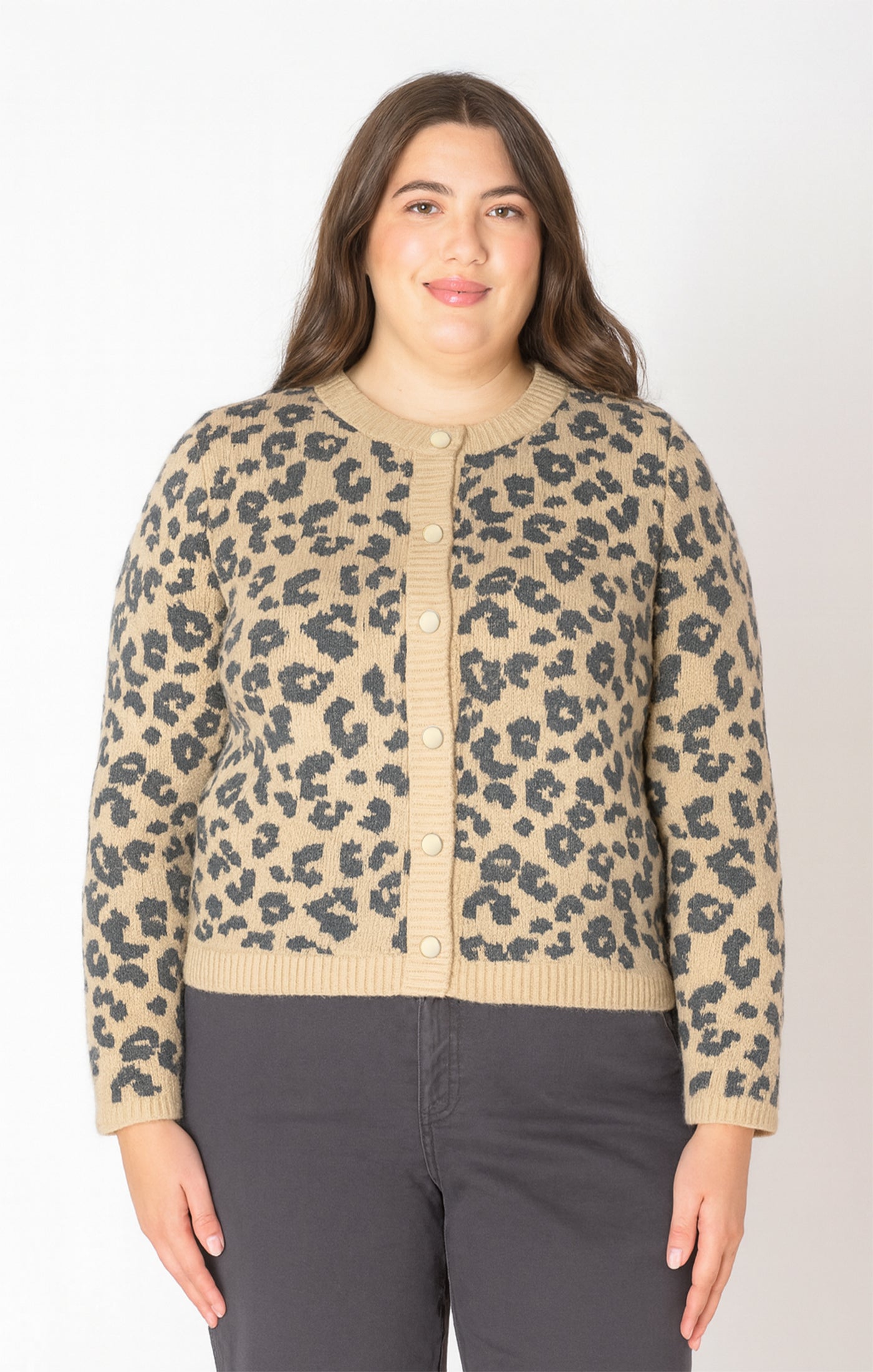 Turn heads in this flirty and fun leopard print crewneck cardigan! Wear it open for an effortlessly cool vibe or button it up to show off your playful side. Perfect for adding a wild touch to any outfit while staying cozy and chic.