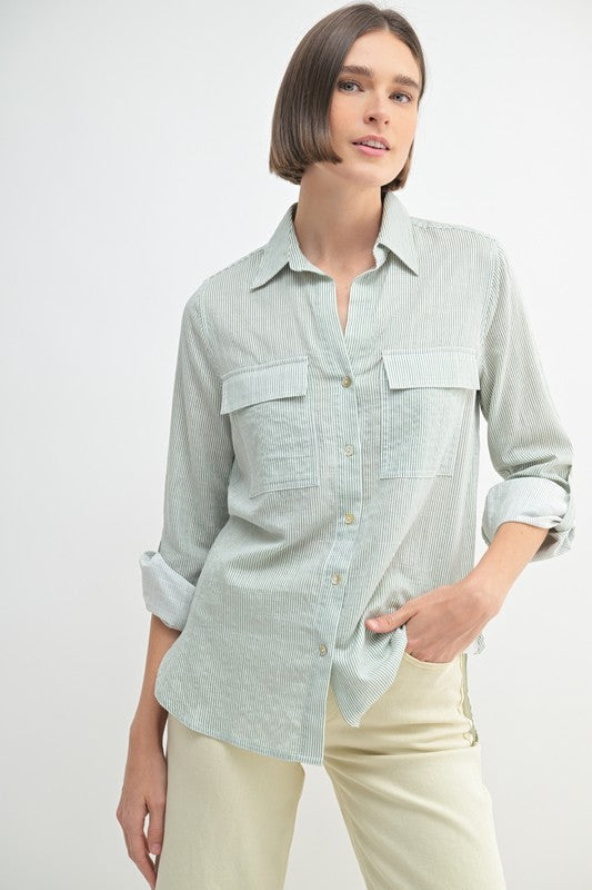 Meet your new favorite Double Pocket Button Up—a shirt that’s as stylish as it is practical. With two handy pockets for all your little essentials, this shirt keeps you organized while looking effortlessly cool. Perfect for tossing on whether you’re heading out for a casual day or layering for a night on the town. Easygoing, comfy, and just a bit cheeky—your wardrobe just got a major upgrade!