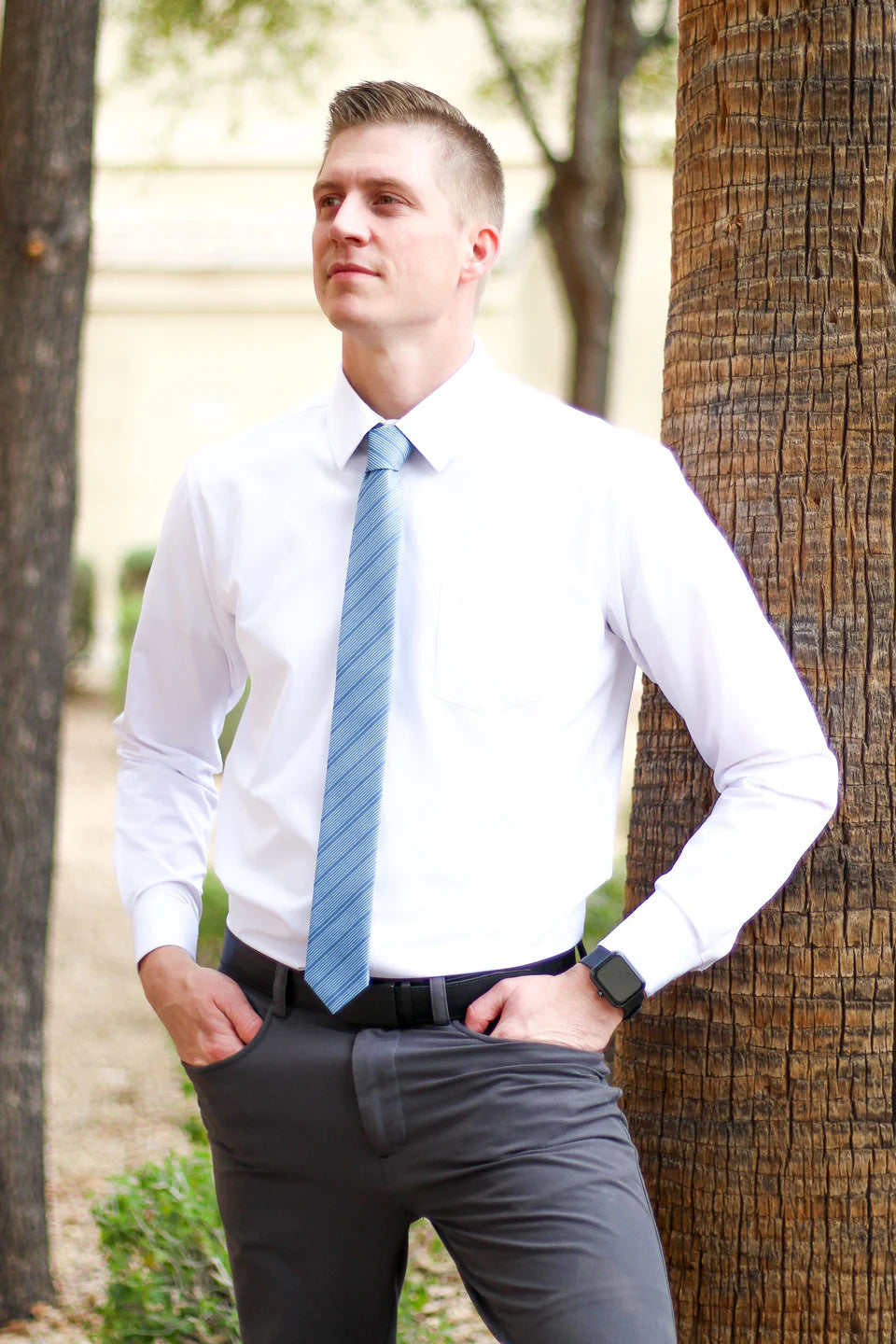 the original performance dress tie built to handle real life. Shark Tank-approved, Tough Mudder-survived, and baby-proof tough. OEKO-TEX® certified for safety and quality, it’s made to resist wrinkles, repel stains, and wash up good as new. Designed for the man who works hard, travels often, and refuses to baby his wardrobe.
