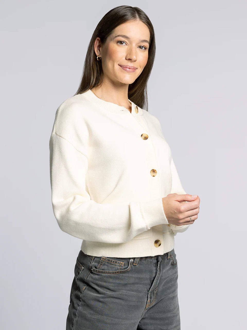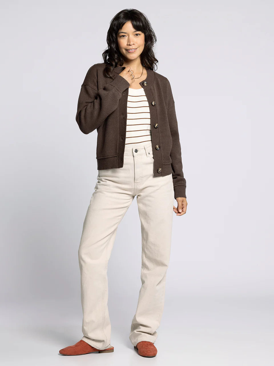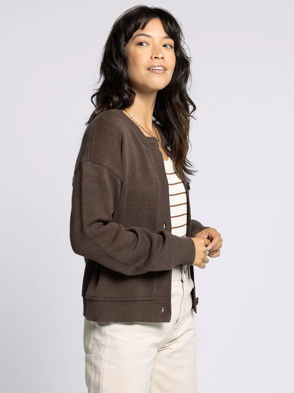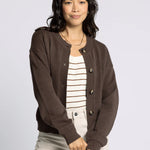 Sure to be a staple in your sweater collection for many years to come, this totally timeless cardigan is featured in a slouchy, relaxed fit with button-front closure and ribbed knit detailing throughout for added dimension.