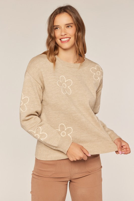 Stay cozy and charming in this Embroidered Floral Sweater, featuring adorable embroidery details that add a playful touch to your casual look. Soft and comfy, it’s perfect for those days when you want to feel effortlessly cute and stylish.